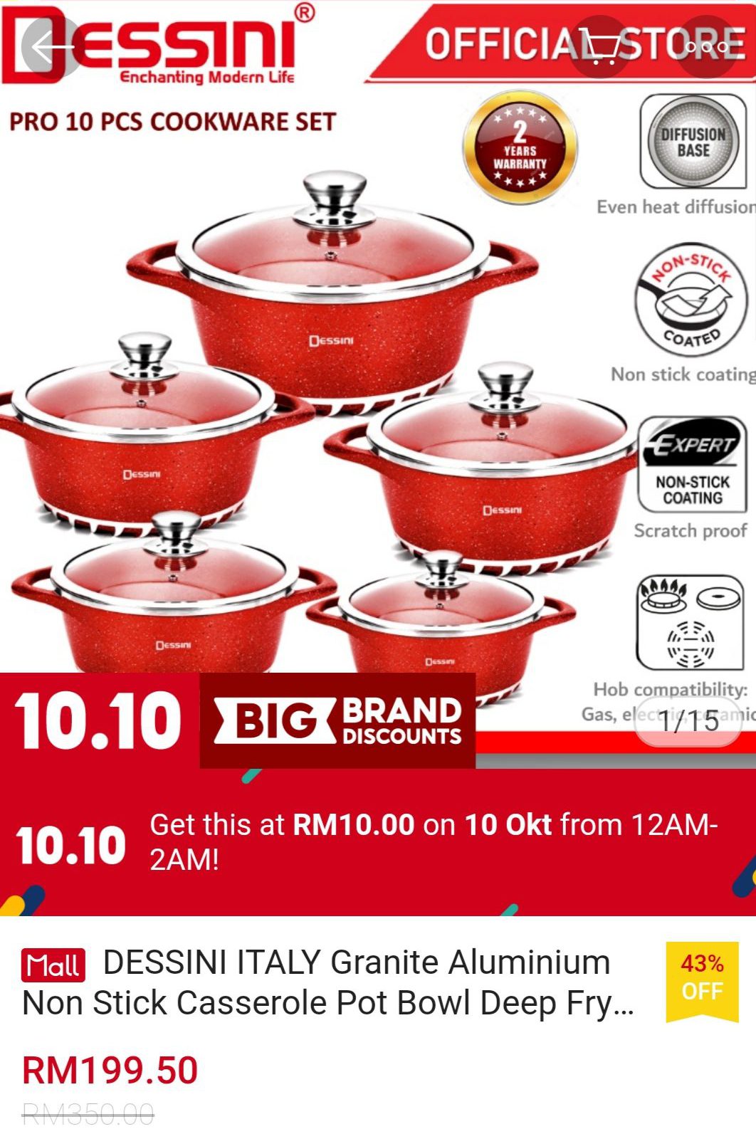 ▪ DESSINI ITALY Granite Aluminium Non Stick Casserole Pot Bowl Deep Fry Pan Cookware Tool (10 Pcs) – RM350 RM10