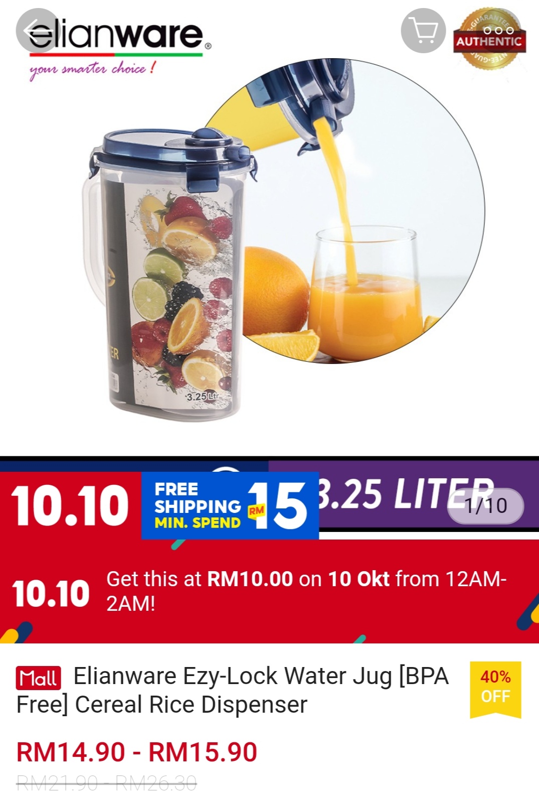 ▪ Elianware Ezy-Lock Water Jug (3.25L) – RM26.30 RM10