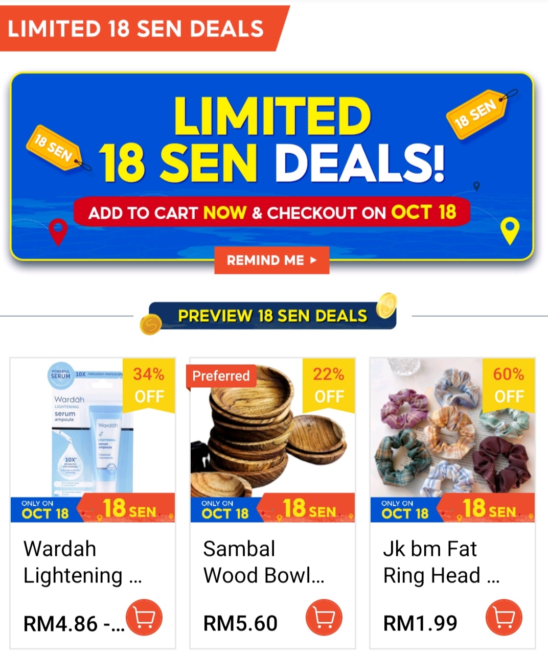 i)在18号当天推出一系列RM0.18 限时优惠商品!