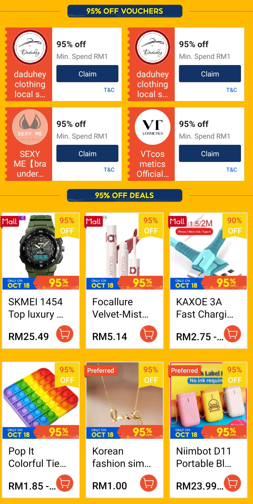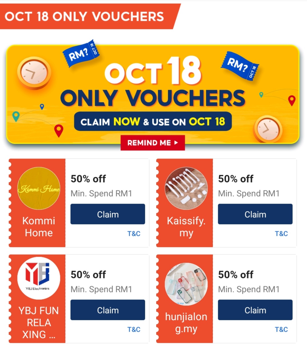 ii)各大商家的50%折扣券,最低消费RM1!