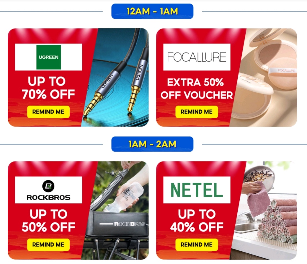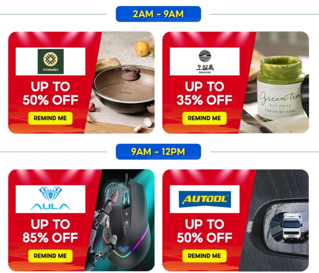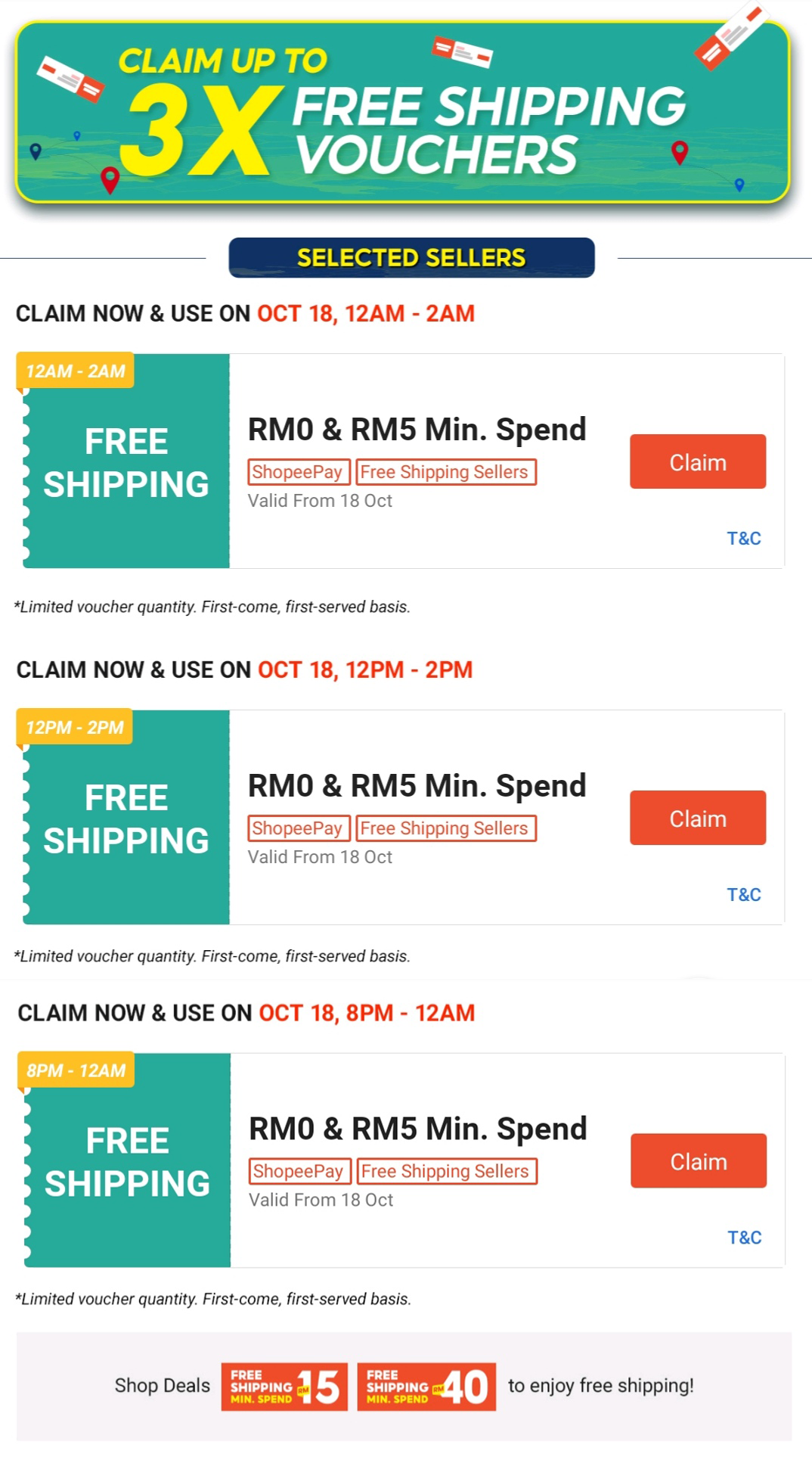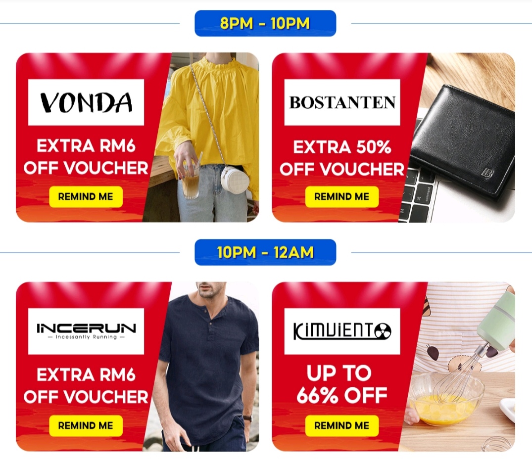 ii)别忘了,领取以下3个时段的免邮券,最低消费RM0 & RM5!
