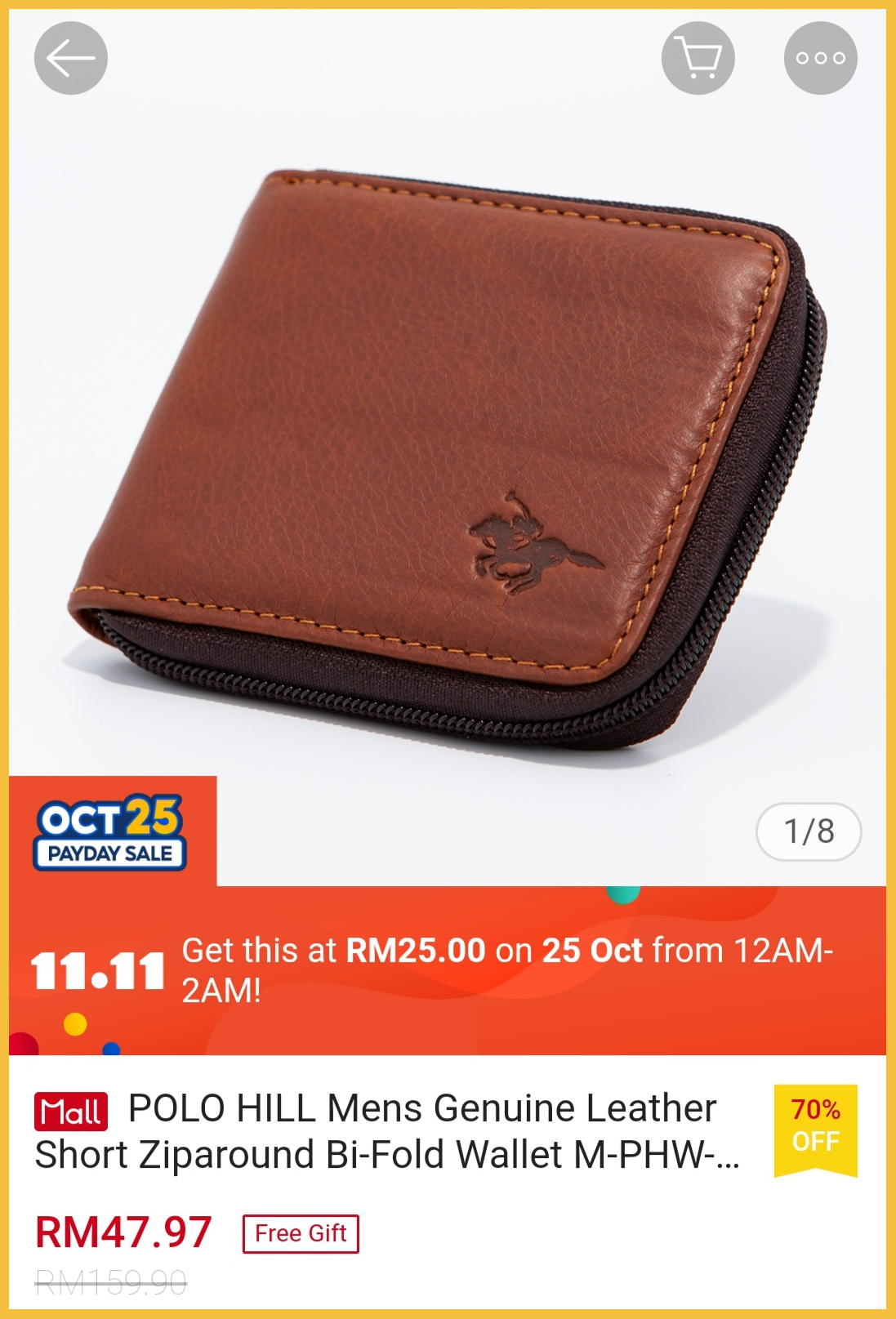 POLO HILL Mens Genuine Leather Short Ziparound Bi-Fold WalletRM159.90 RM25