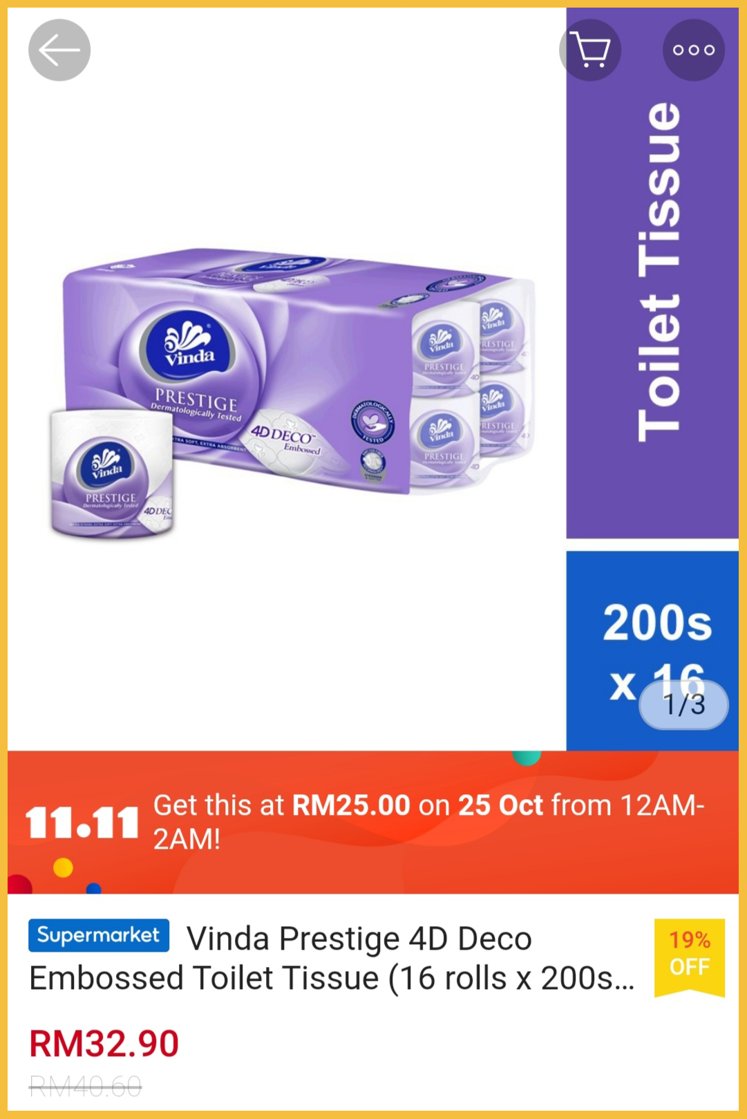 Vinda Prestige 4D Deco Embossed Toilet Tissue (16 rolls x 200s)RM40.60 RM25