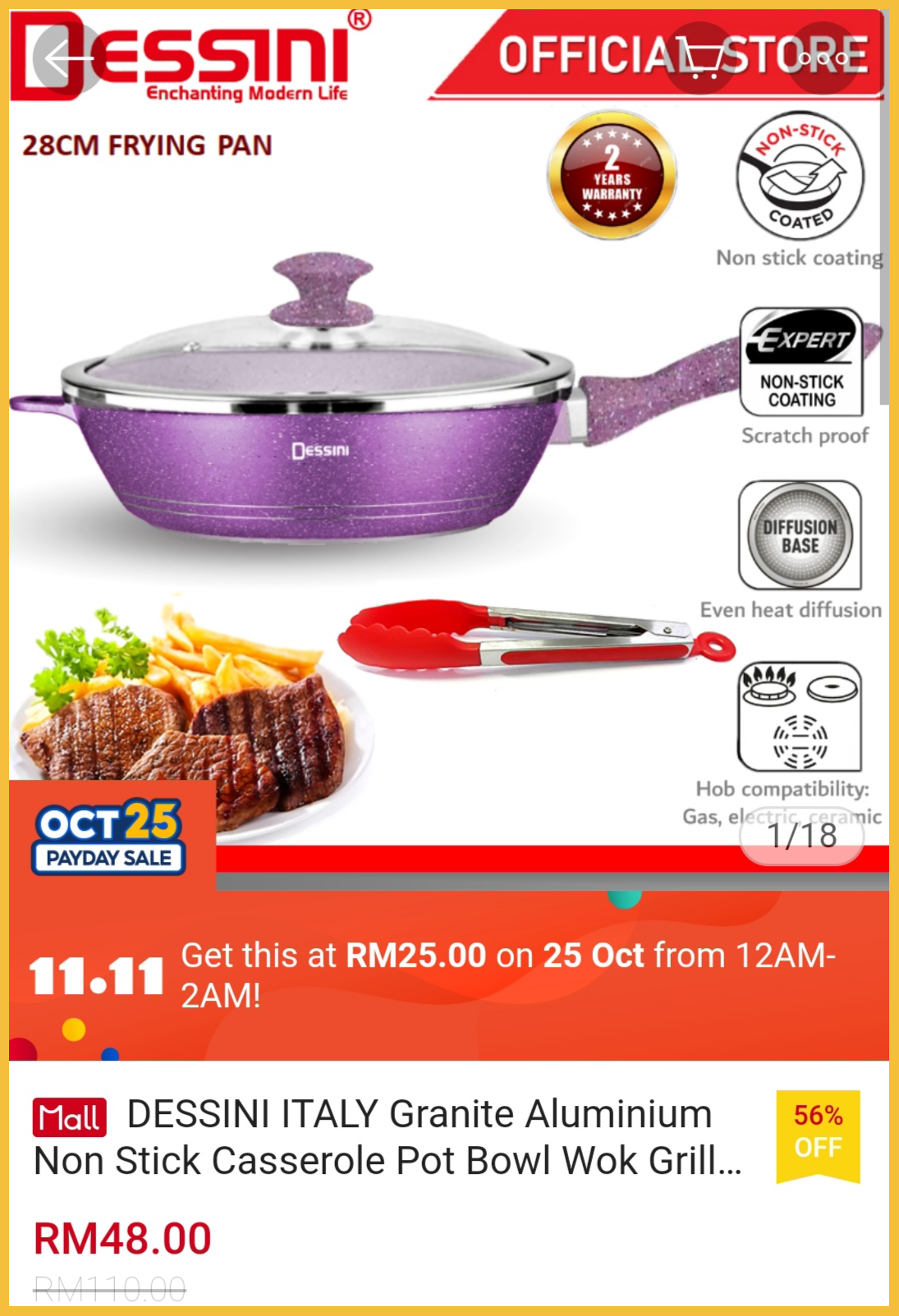 DESSINI ITALY Granite Aluminium Non Stick Casserole PotRM110 RM25