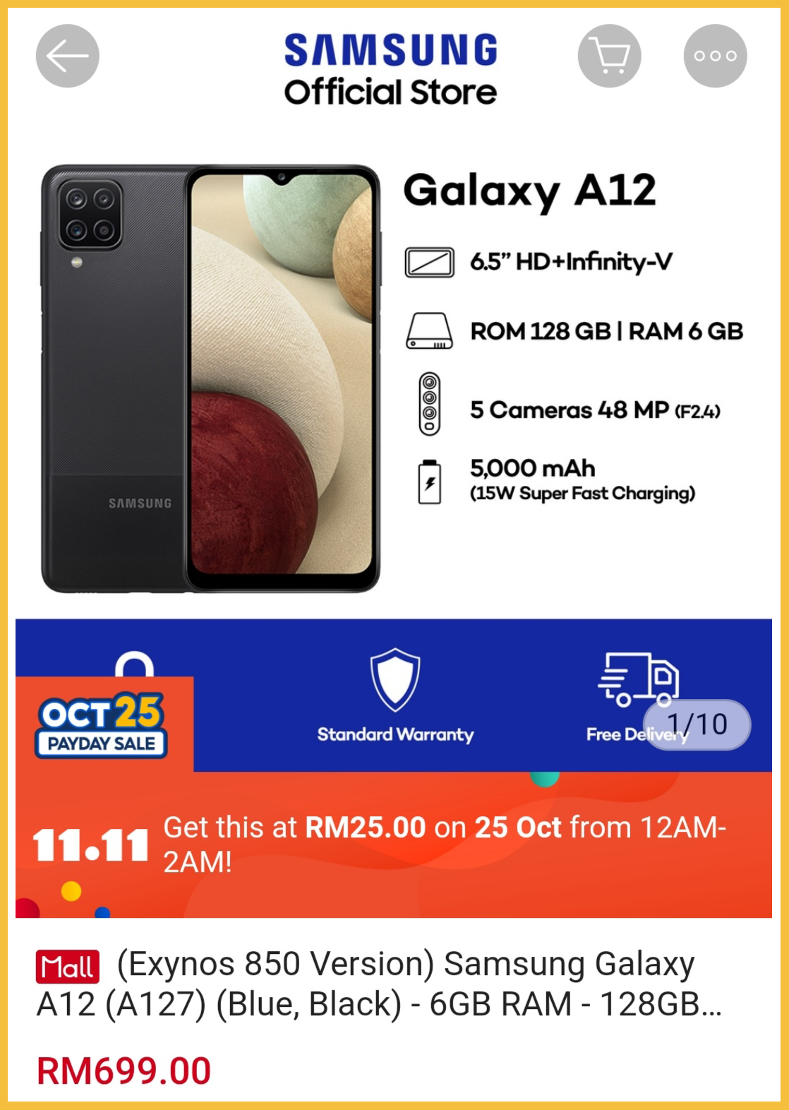 【10.25大促销】Shopee推出RM25超值商品!Samsung A12只需RM25!
