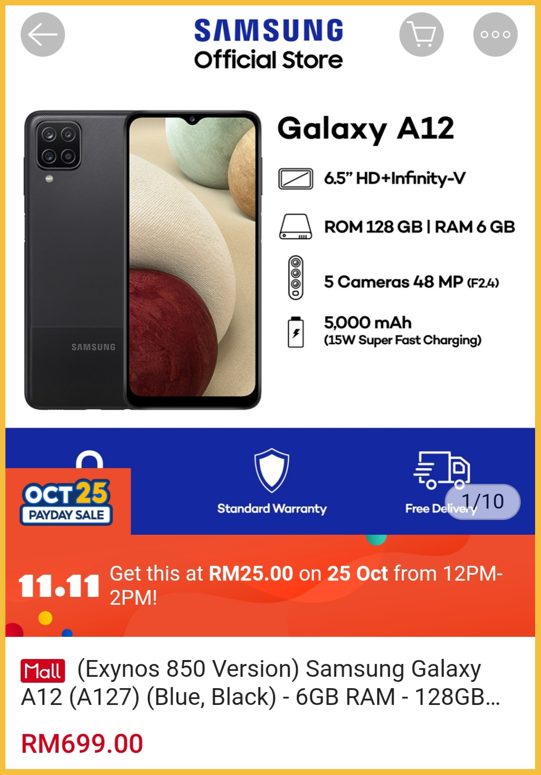 ▪ Samsung Galaxy A12 | 6GB RAM 128GB ROM – RM699 RM25