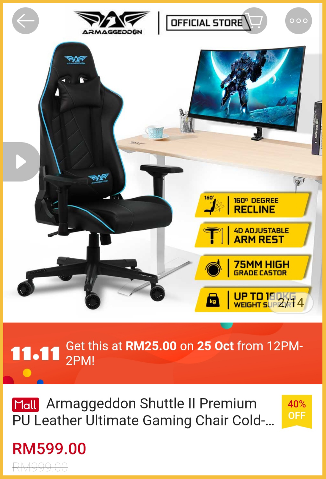 ▪ Armaggeddon Shuttle II Premium PU Leather Ultimate Gaming Chair – RM999 RM25