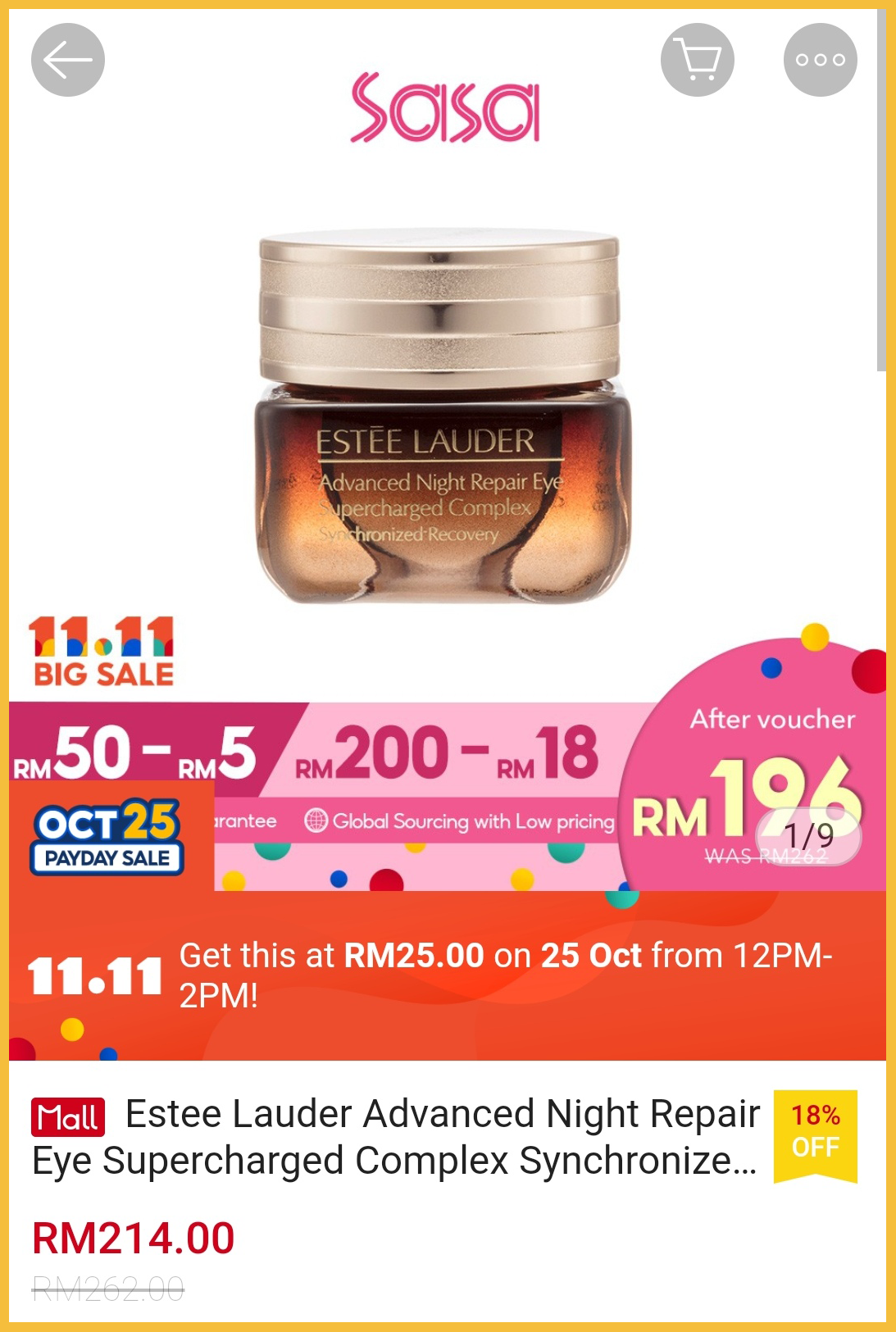 ▪ Estee Lauder Advanced Night Repair Eye Supercharged Complex Synchronized Recovery (15 ml) – RM262 RM25