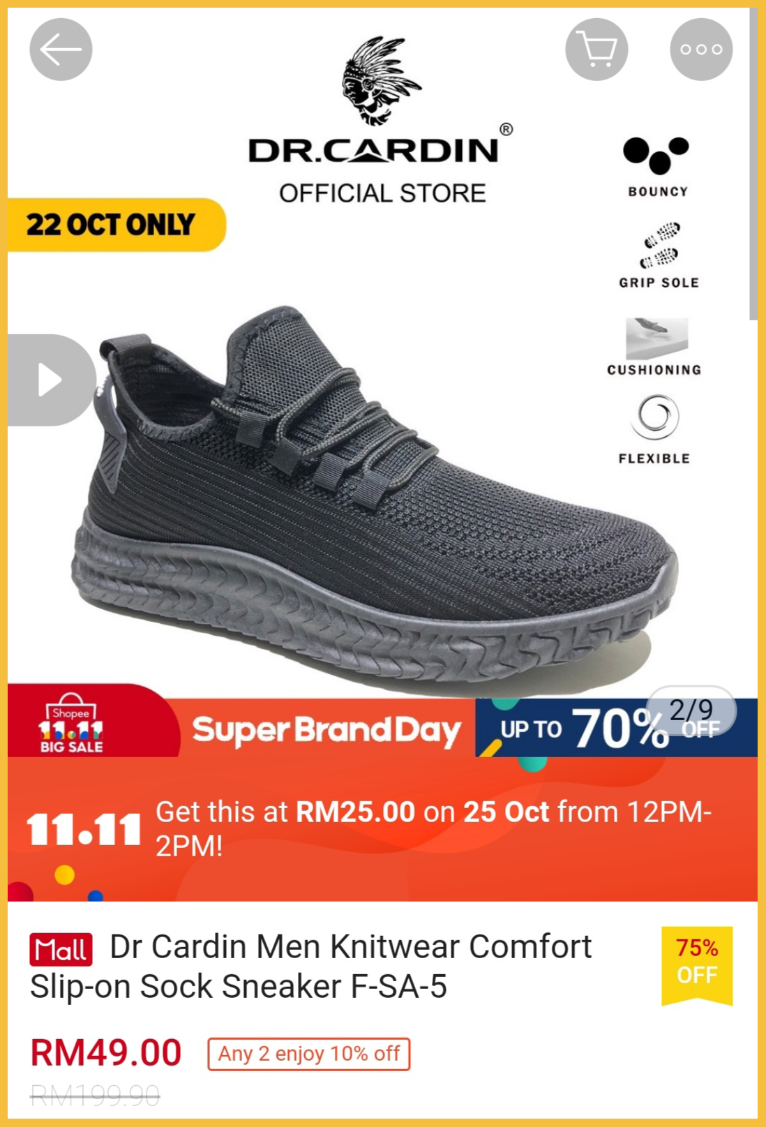 ▪ Dr Cardin Men Knitwear Comfort Slip-on Sock Sneaker – RM199.90 RM25