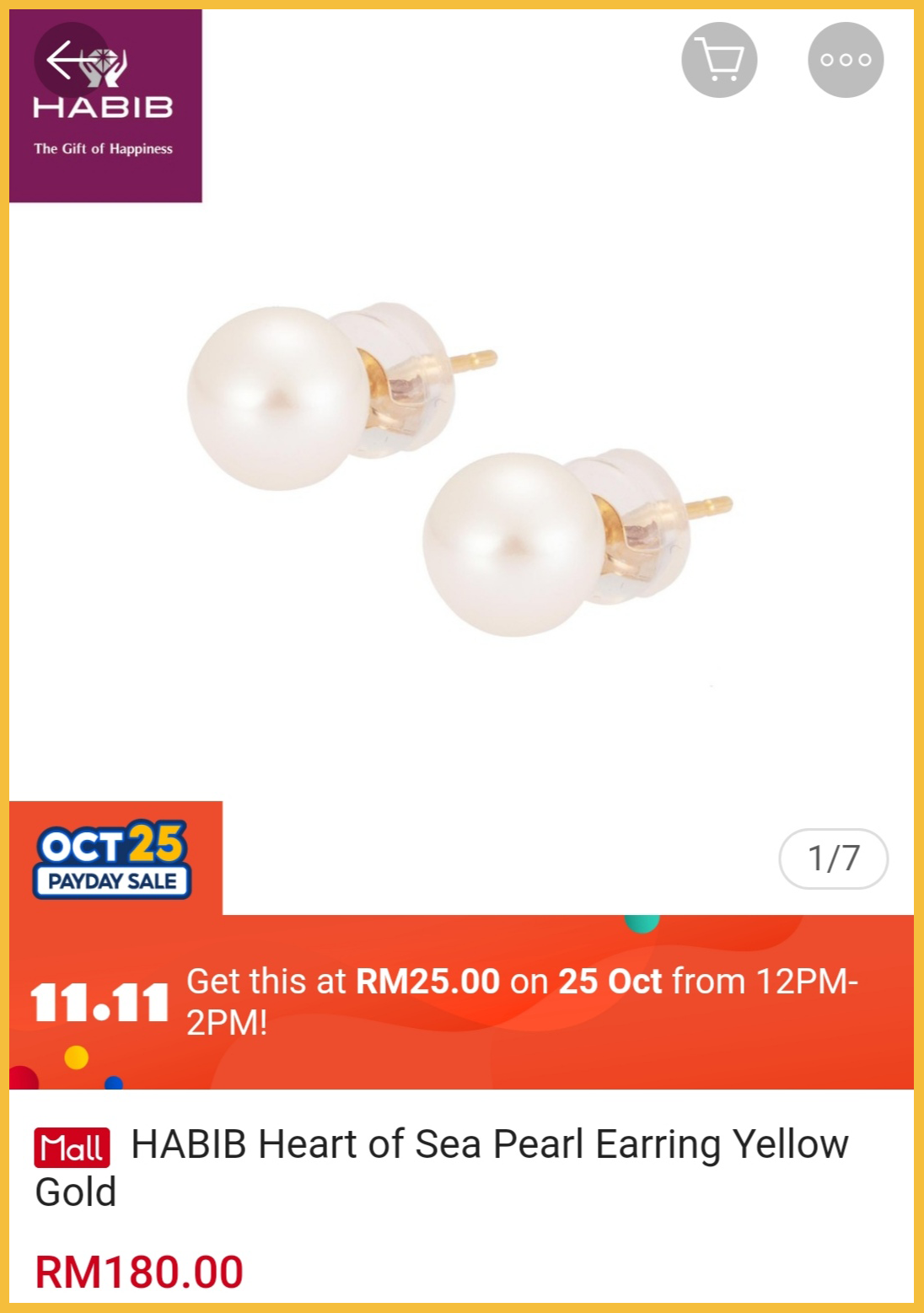 ▪ HABIB Heart of Sea Pearl Earring Yellow Gold – RM180 RM25
