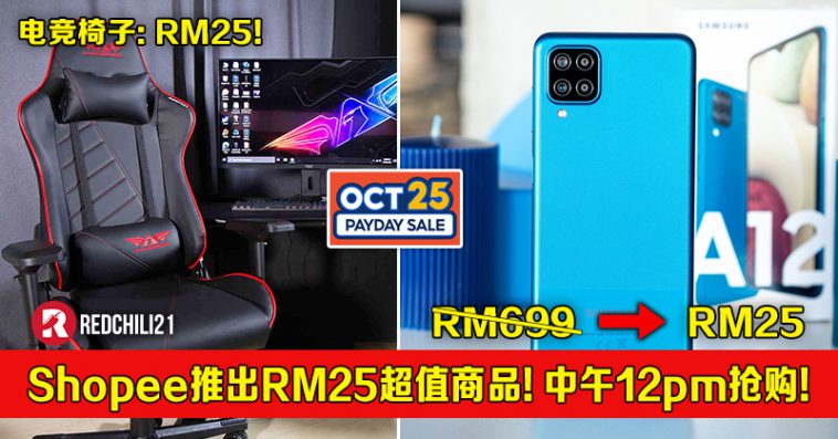 Shopee 将在【10月25日】举办PayDay 促销优惠,并在当天的中午12pm 至2pm 推出特价优惠商品,统统只需RM25!