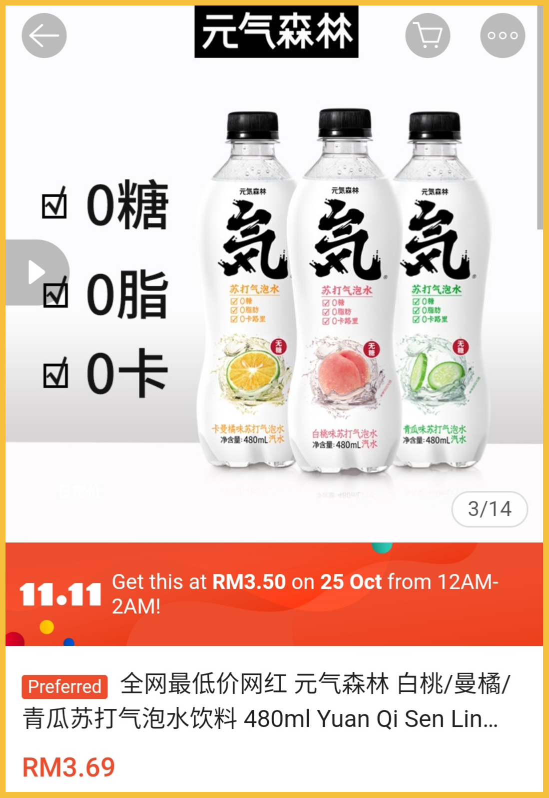 ▼ 元气森林苏打气泡水饮料 – RM3.50
