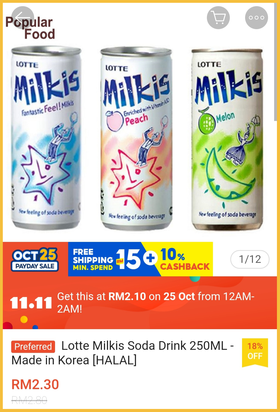 ▼ Lotte Milkis Soda Drink 250ml – RM2.10