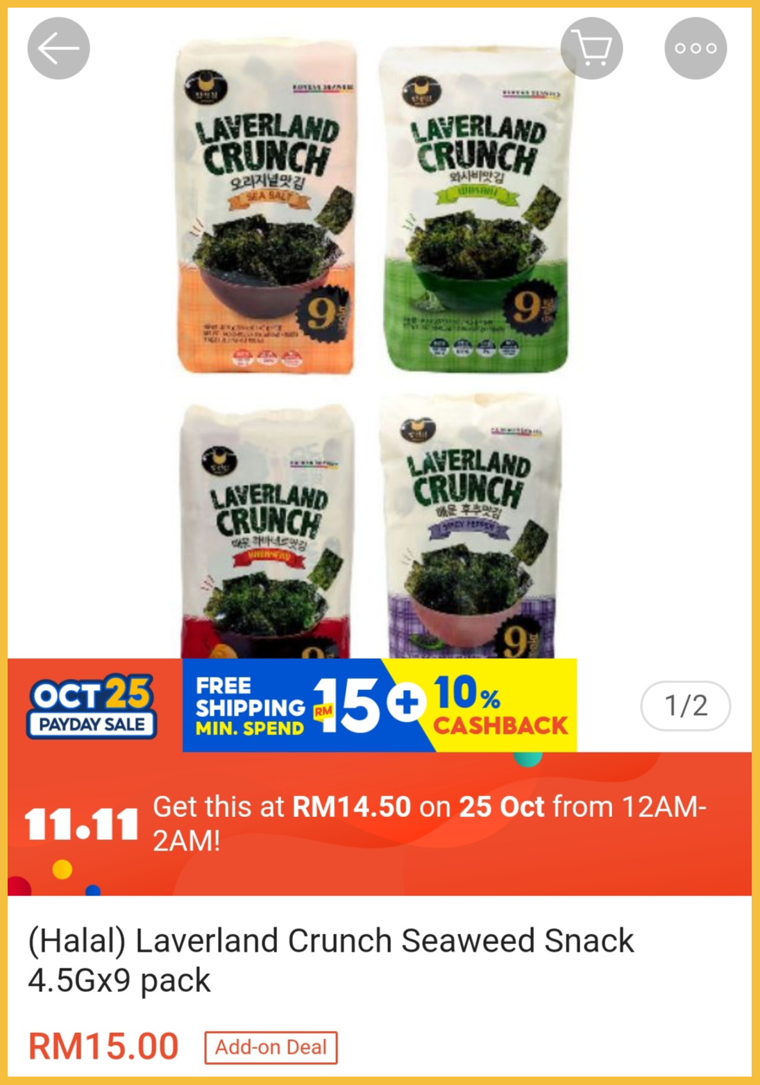 ▼ Laverland Crunch Seaweed Snack 4.5Gx9 pack – RM14.50
