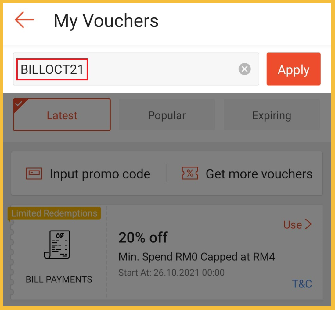 ▼ 第2个方式: 所有账单可获得20%回扣(高达RM4回扣)