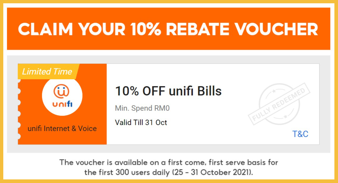 - 此优惠可适用于Unifi Home、Streamyx 和Voice Bills 账单!