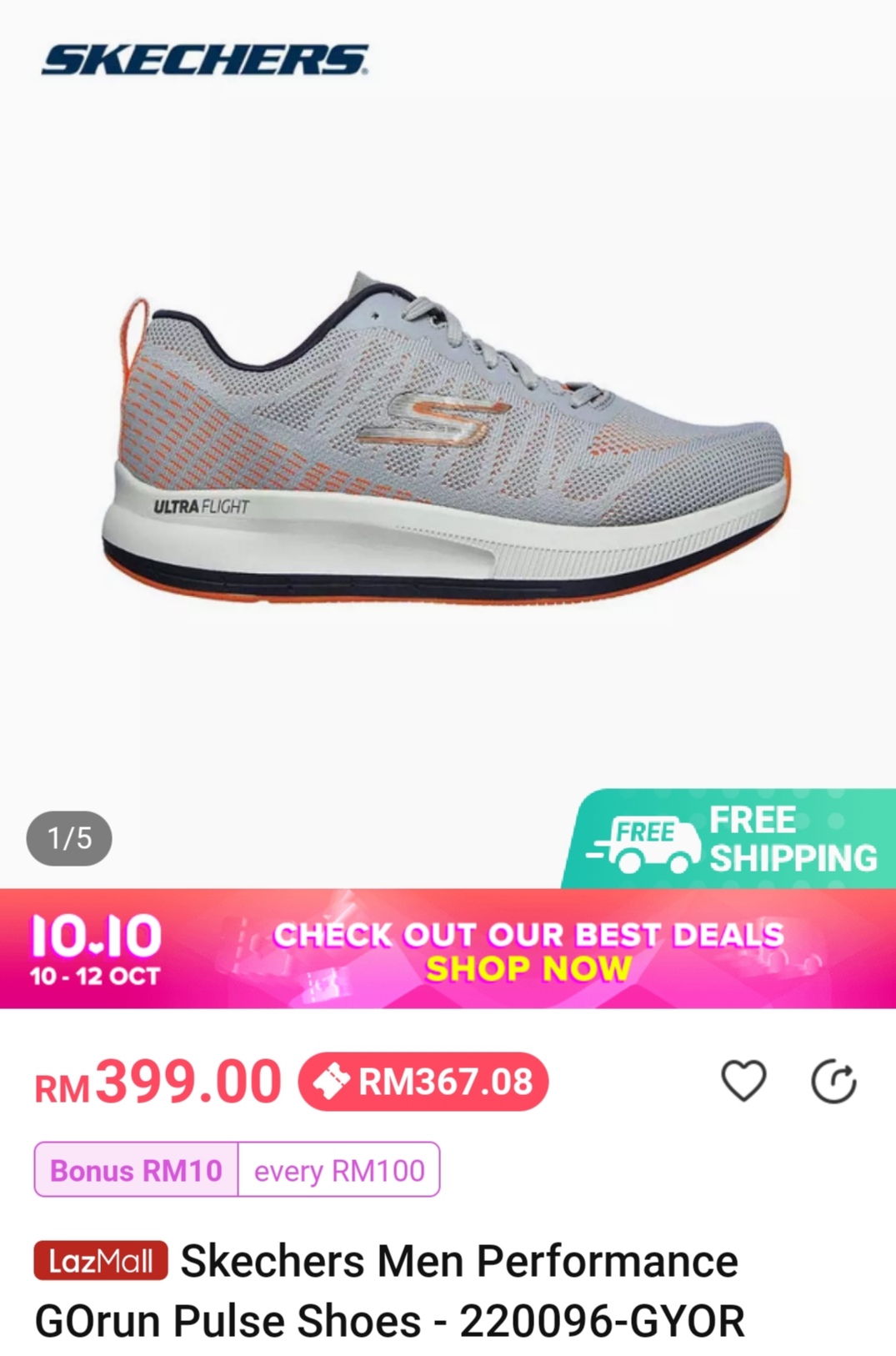 在10月10日凌晨12am 至2am 下单可额外折扣10%!想买Skechers 运动鞋的朋友,可趁着这机会入手啦!
