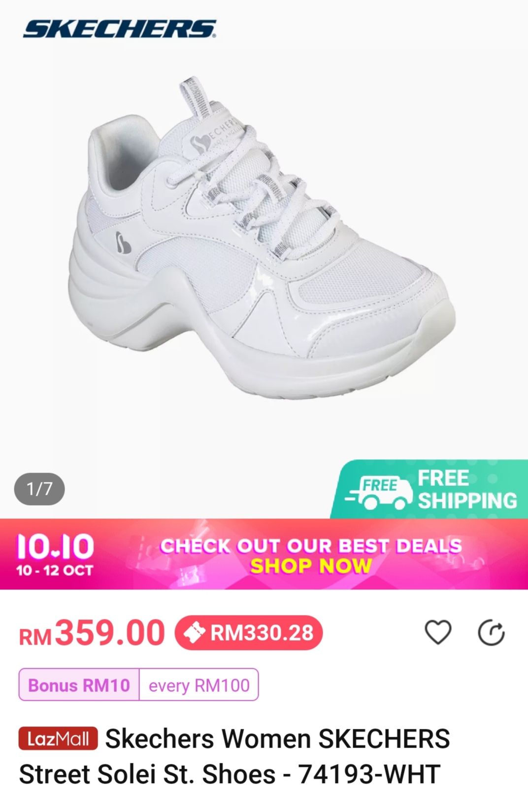 ▼ Skechers Women SKECHERS Street Solei St. Shoes 74193 – RM359 RM330.28(领取店家优惠券折扣后的价格)