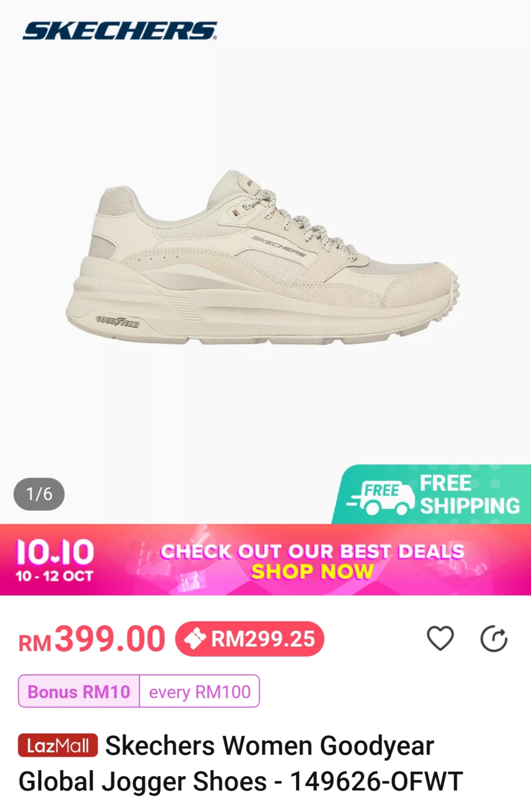 ▼ Skechers Women Goodyear Global Jogger Shoes 149626 – RM399 RM299.25(领取店家优惠券折扣后的价格)