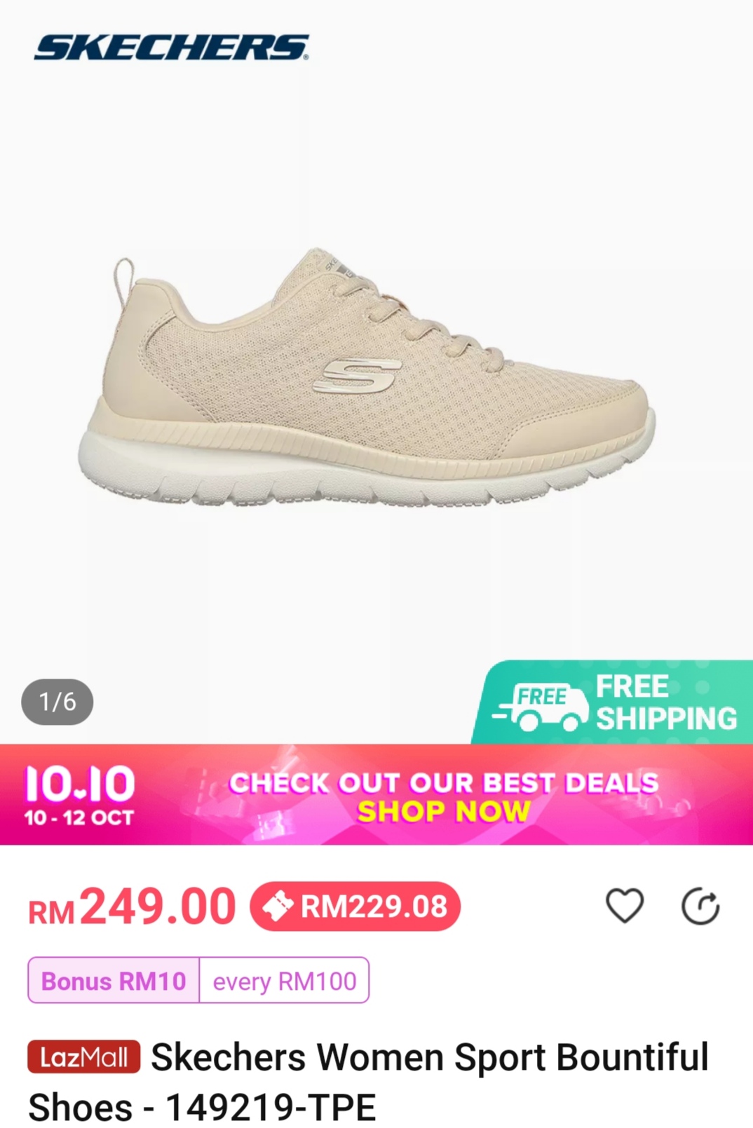 ▼ Skechers Women Sport Bountiful Shoes 149219 – RM249 RM229.08(领取店家优惠券折扣后的价格)
