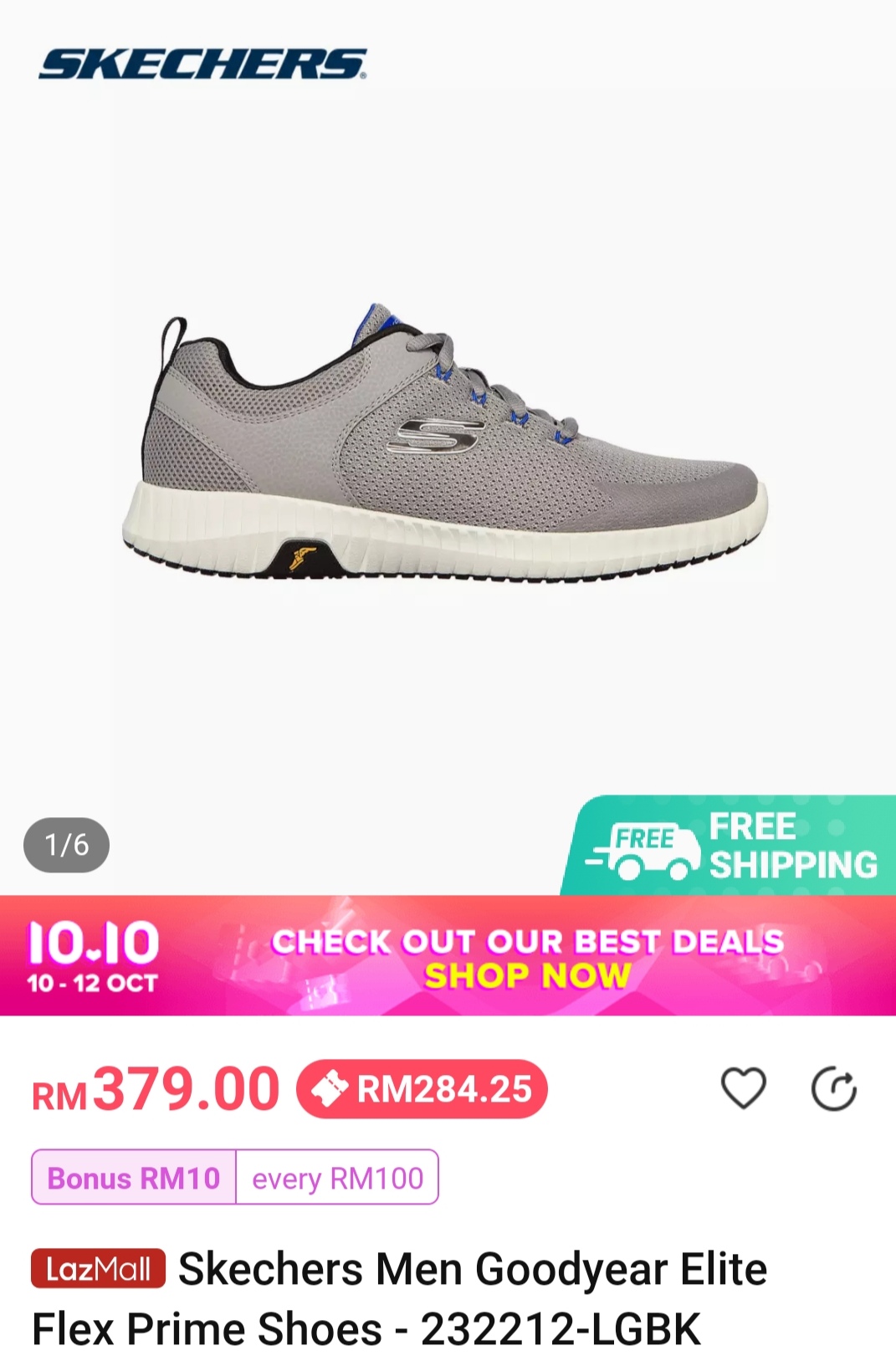 这项优惠是由Skechers 与Lazada 联合推出【10.10 Crazy Brand Mega Offer】大优惠,运动商品享有折扣高达60%!