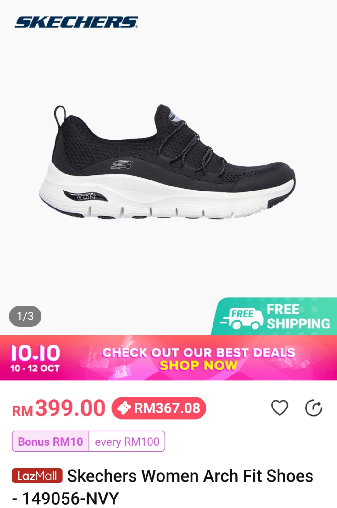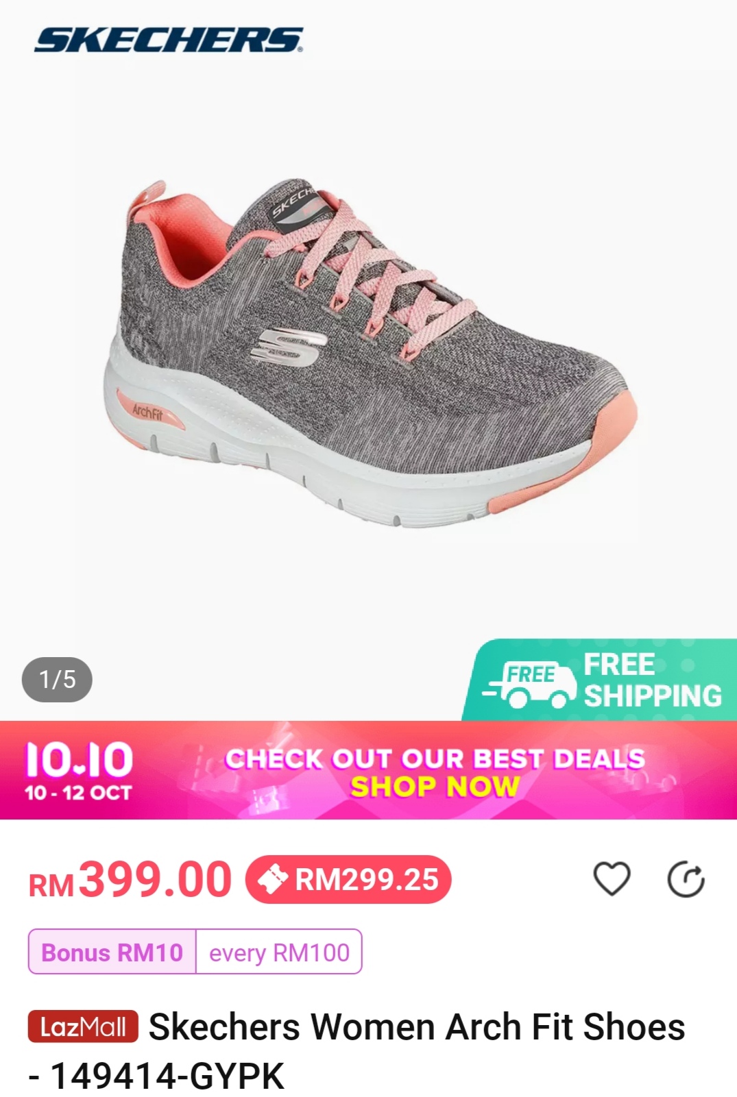 ▼ Skechers Women Arch Fit Shoes 149056 – RM399 RM367.08(领取店家优惠券折扣后的价格)