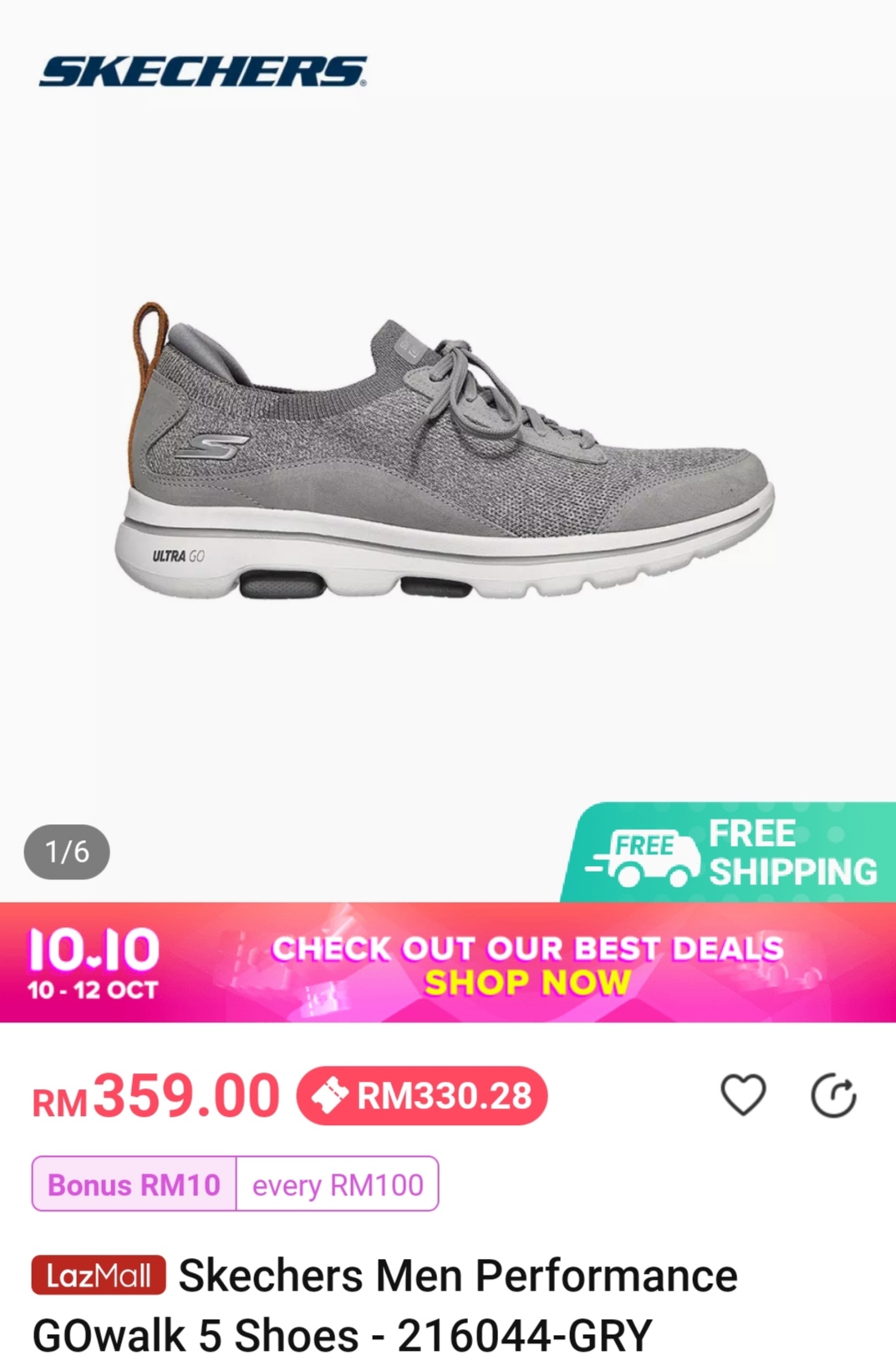 ▼ Skechers Men Performance GOwalk 5 Shoes 216044 – RM359 RM330.28(领取店家优惠券折扣后的价格)
