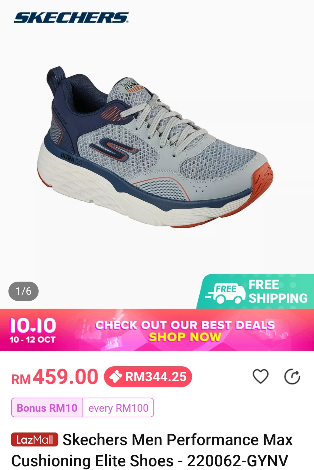 ▼ Skechers Men Performance Max Cushioning Elite Shoes 220062 – RM299 RM275.08(领取店家优惠券折扣后的价格)