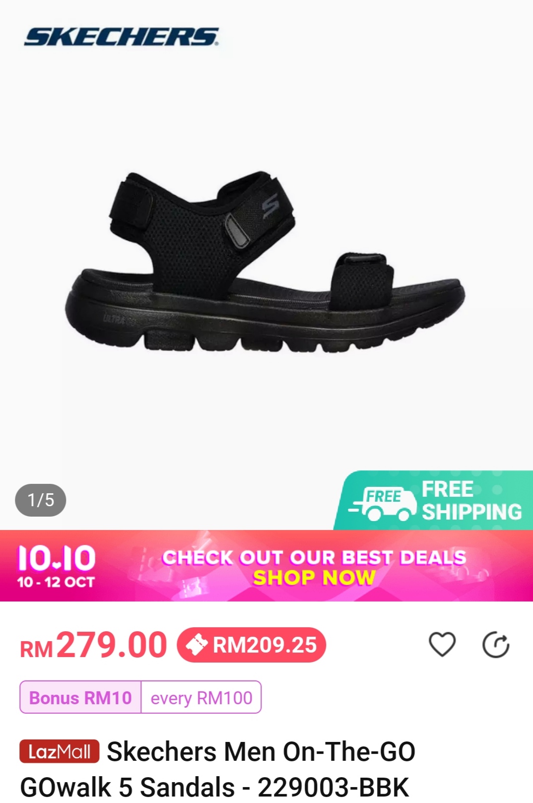 ▼ Skechers Men On-The-GO GOwalk 5 Sandals 229003 – RM279 RM209.25(领取店家优惠券折扣后的价格)