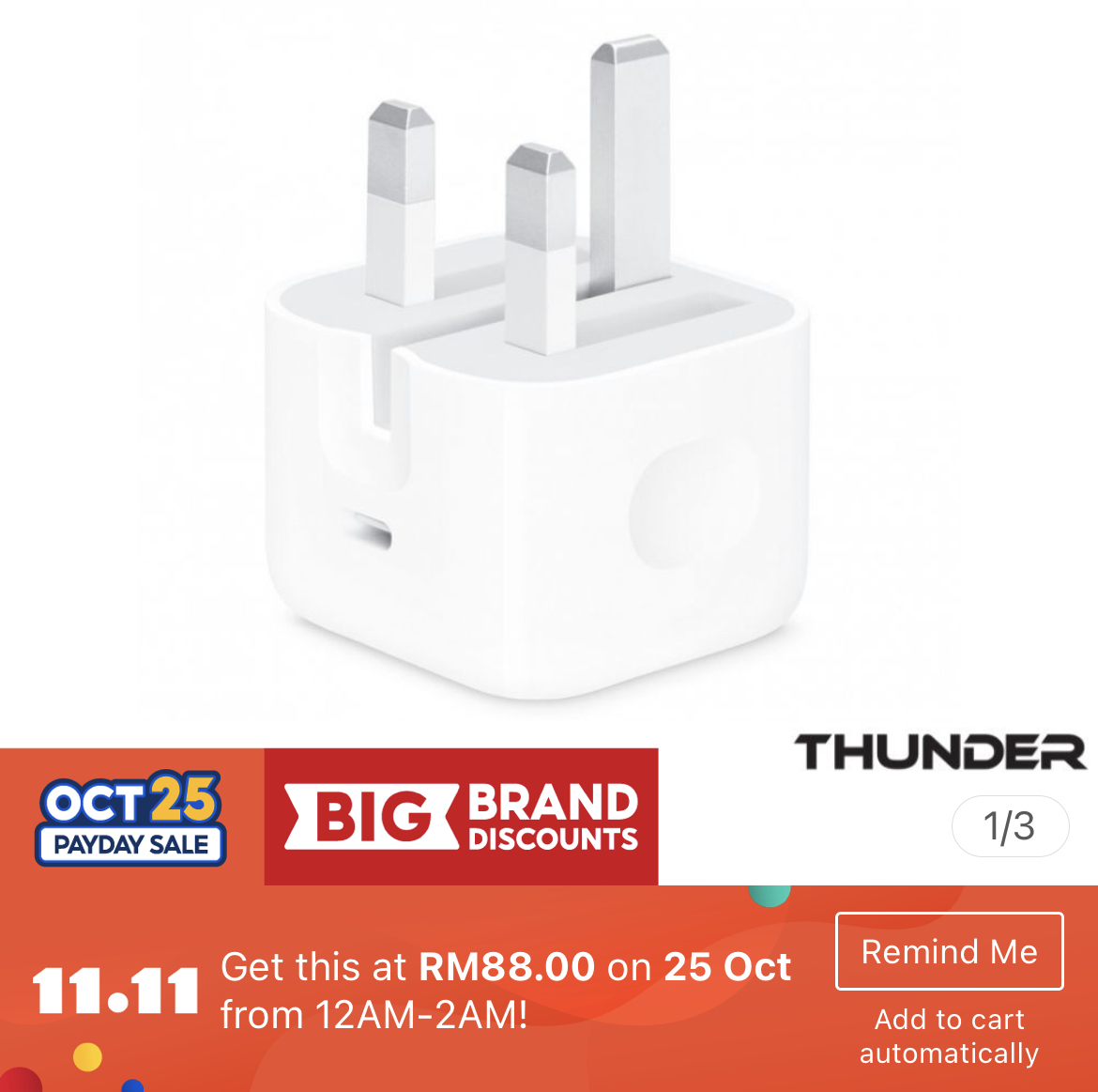 ▼ ③ Apple 20W USB-C Power Adapter – 原价 RM99.00 10.25促销:只需RM88!