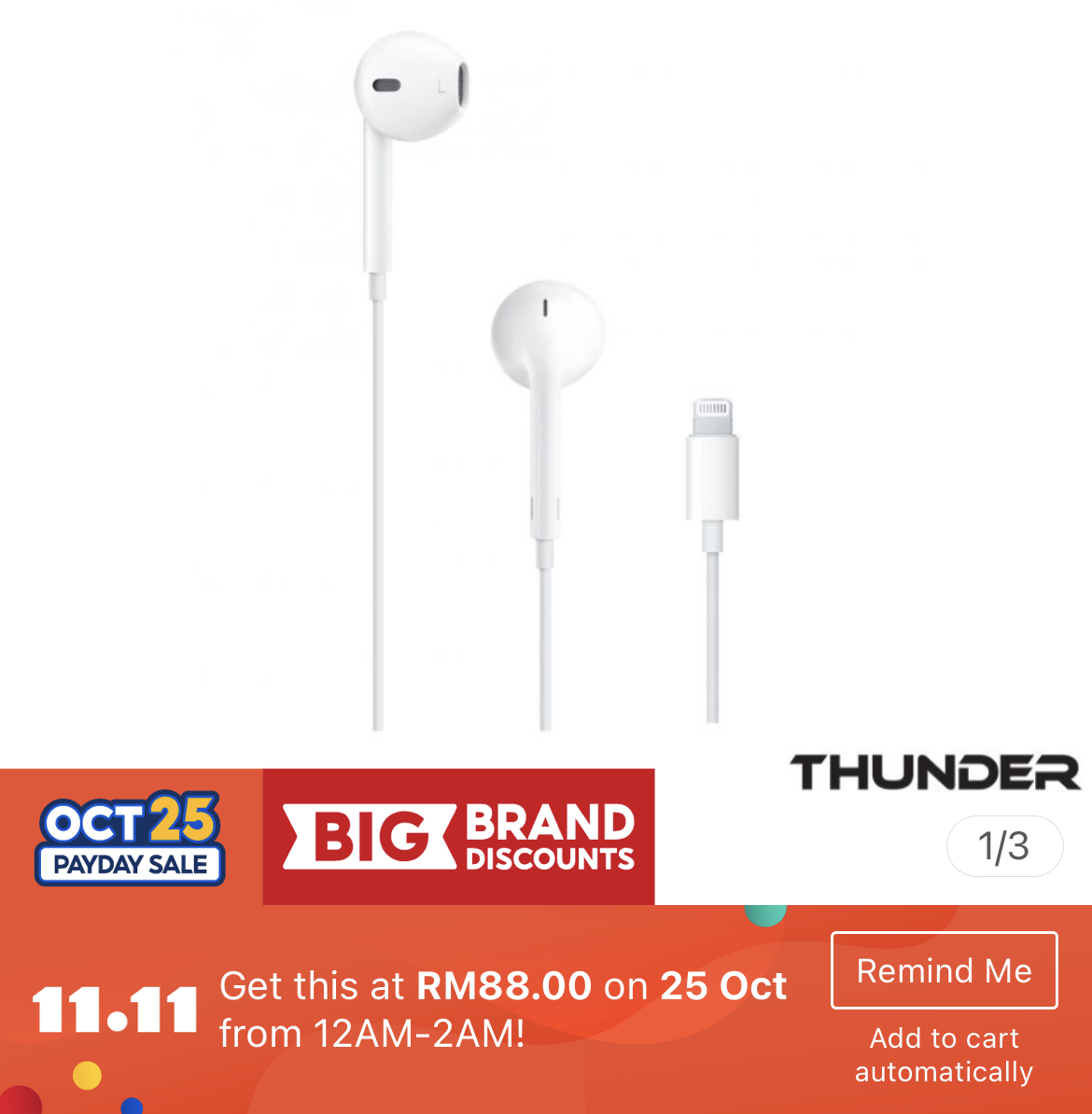▼ ④ Apple EarPods with Lightning Connector – 原价 RM99.00 10.25促销:只需RM88!