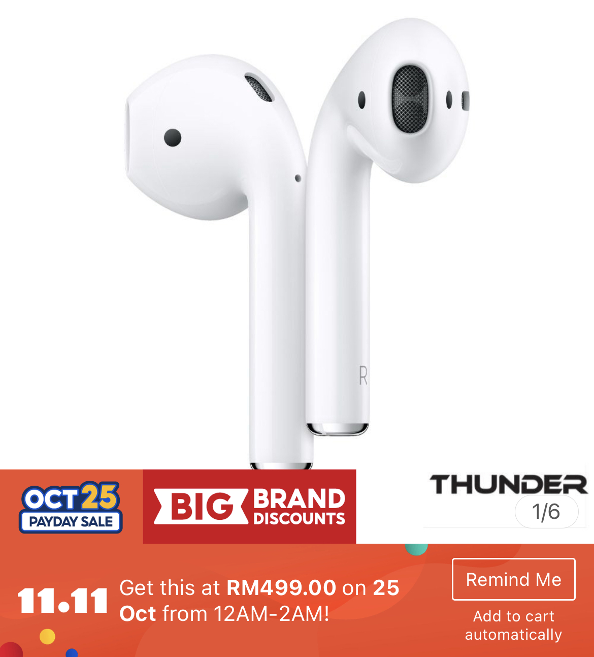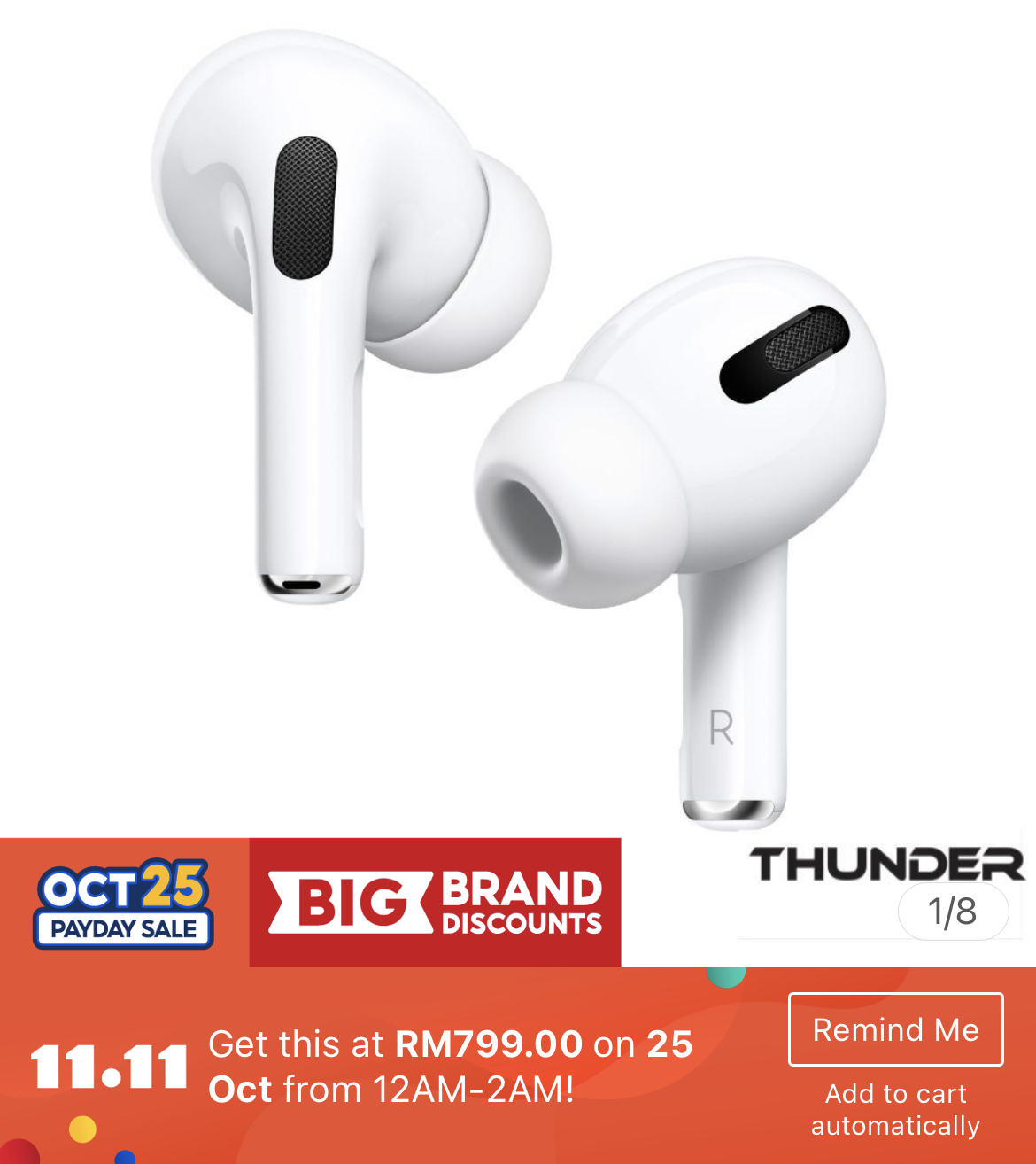 10月25日的12am至2am,大马 Apple 经销商 —— TMT Thunder 将在 Shopee 官方网店 推出限时优惠,6款 Apple 配件包括 AirPods 以及 AirPods Pro,折扣多达RM300!