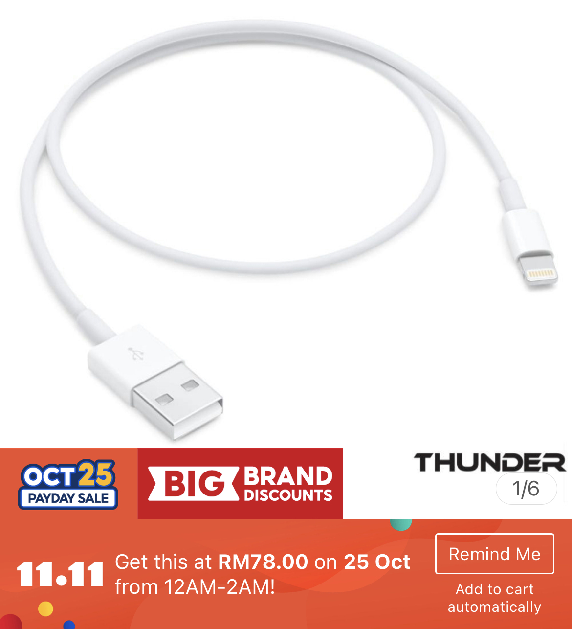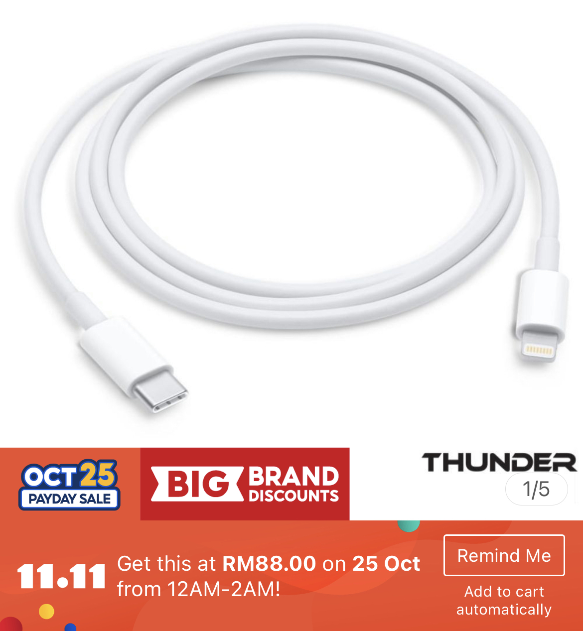 ▼ ① Apple Lightning to USB Cable – 原价 RM89.00 – RM149.00 10.25促销:只需RM78.00起!