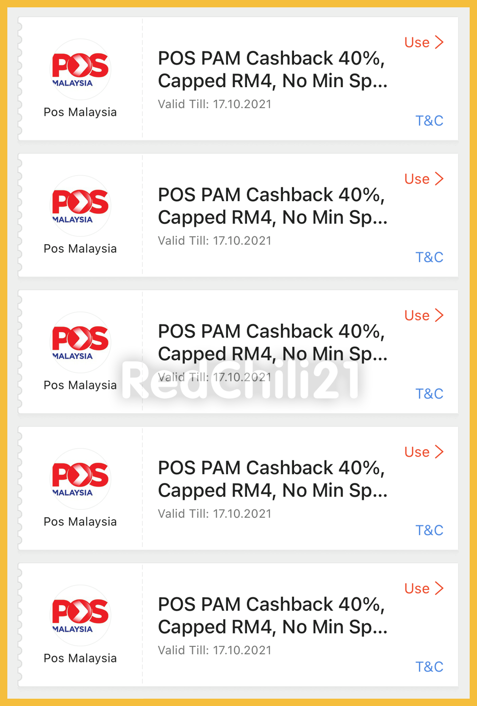 ① 在Shopee App 购买POS PAM 礼券可获得RM4 现金回扣!