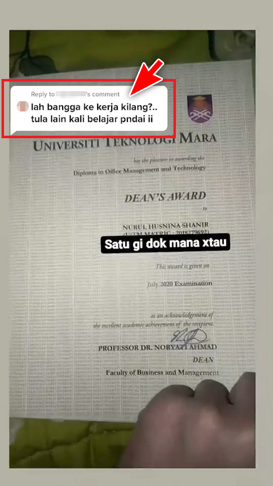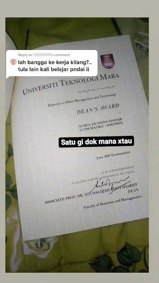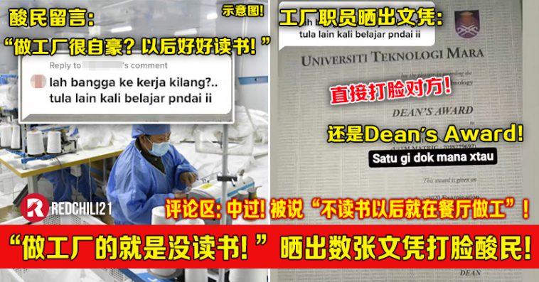 一名大马女子近日遭网民评论嘲讽“做工厂的就是没有读书的”,随后她上传视频回应,视频里就是几页大学的文凭证书而且成绩优越,直接打脸对方!