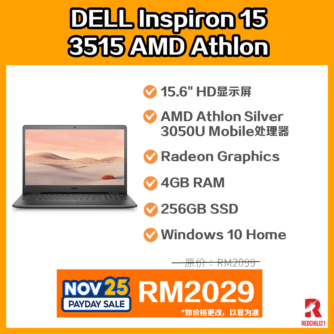 ▪ ⑨ DELL INSPIRON 15 3515 AMD Athlon Laptop (ATHLON 3050U, 4GB, 256GB SSD, 15.6″ HD, BLACK-W10, H&S)