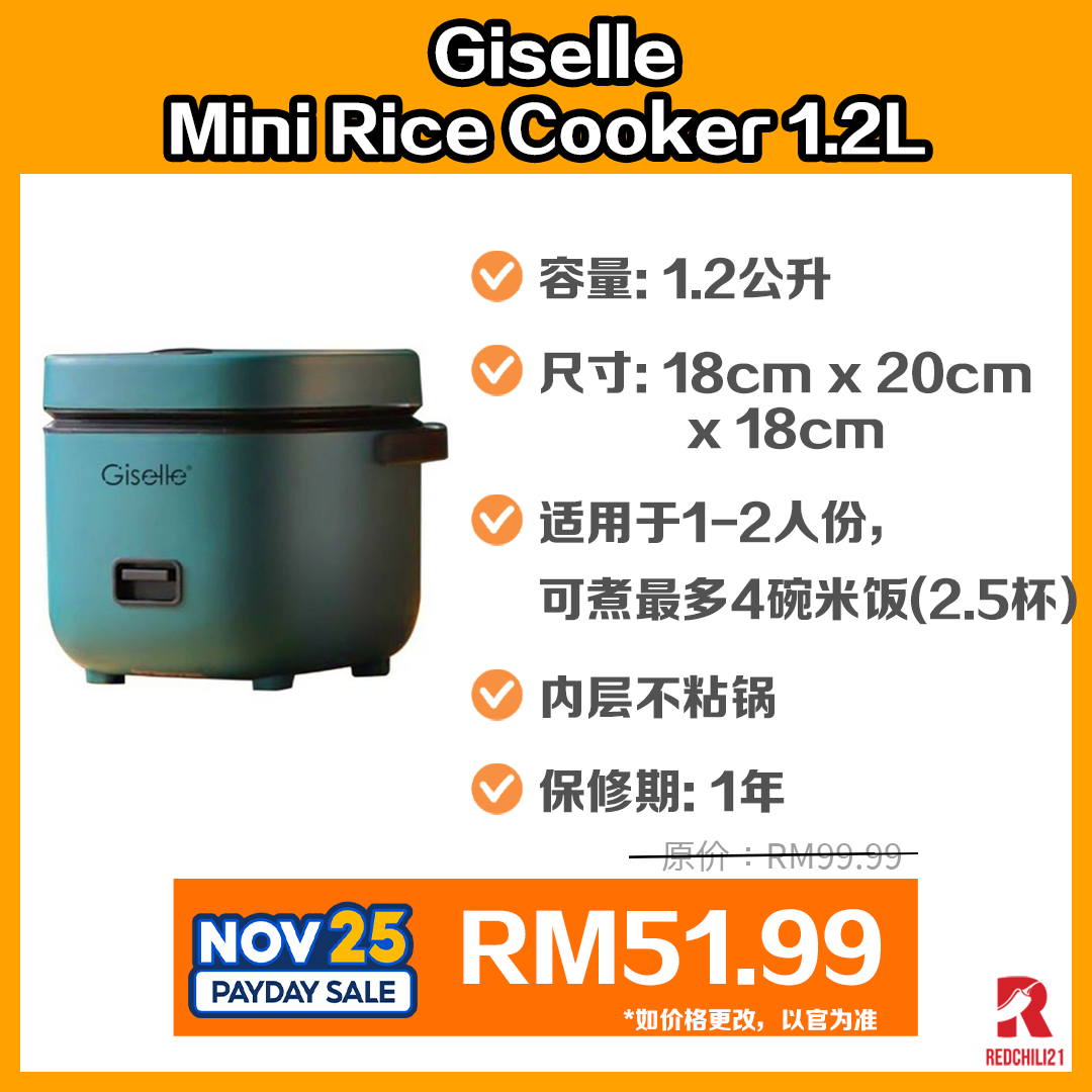 ▼ Giselle Mini Rice Cooker 1.2L – RM99.00 RM51.99(11月25日促销 12am-2am)