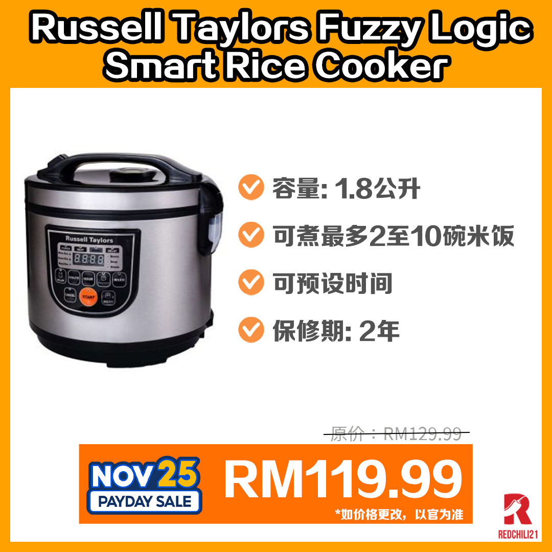 ▼ Russell Taylors Fuzzy Logic Smart Rice Cooker – RM129.99 RM119.99(11月25日促销 12am-2am)