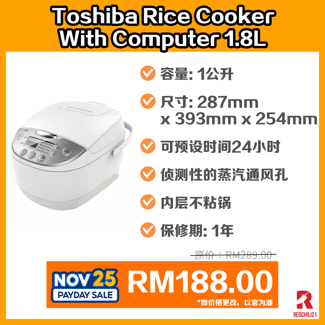 ▼ Toshiba Rice Cooker With Computer RC-18DH1NMY (1.8L) / RC-10DH1NMY (1.0L) – RM289.00 RM188.00