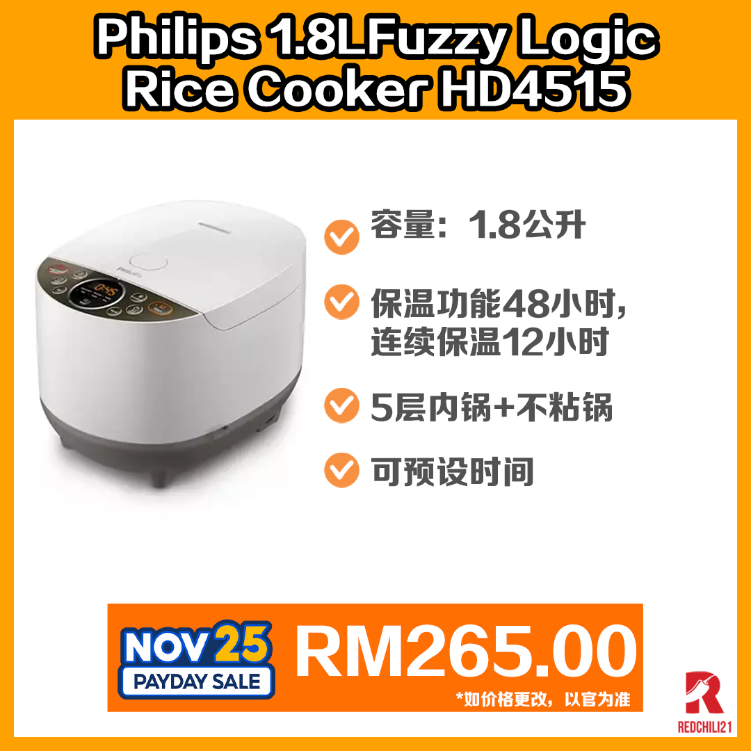 ▼ Philips 1.8L Fuzzy Logic Rice Cooker HD4515 ( HD4515/63 ) – RM265.00