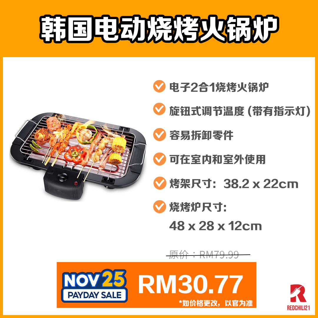 以上几款烧烤火锅炉的特别优惠价是在11月25日当天凌晨12am 至2am 推出!你可把商品加进购物车,到时直接下单就行啦!
