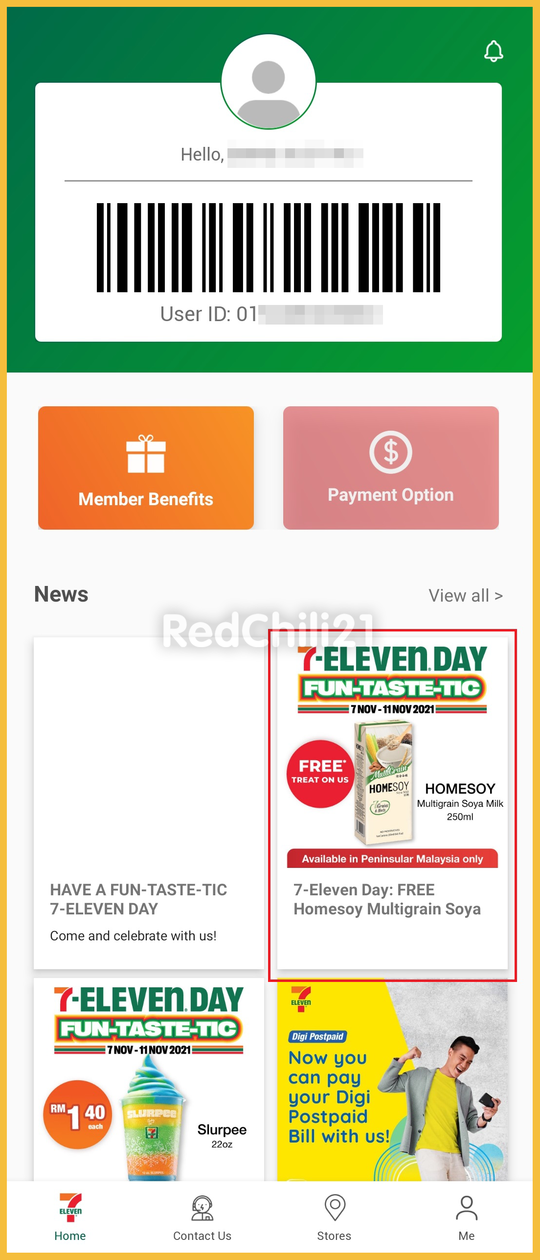 只要你亲临到大马7-Eleven 分行进行扫描会员ID及优惠券(e-Coupon),即可免费领取一盒250ml Home Soy 谷粮豆奶!