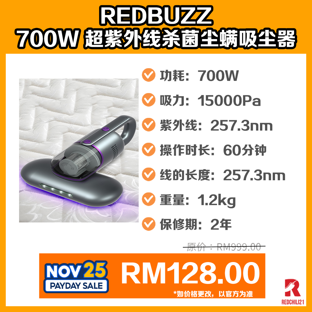 ▪ ① REDBUZZ 700W Dust Mite Vacuum Cleaner Dust Mite Killer Ultra UV Light Sterilization