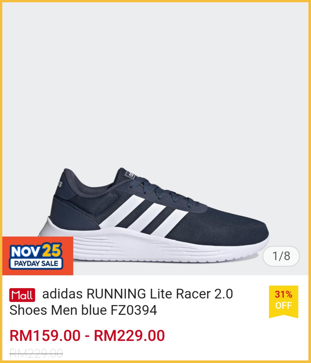 adidas RUNNING Lite Racer 2.0 Shoes Men blue FZ0394【折扣31%】- RM159(原价RM229)
