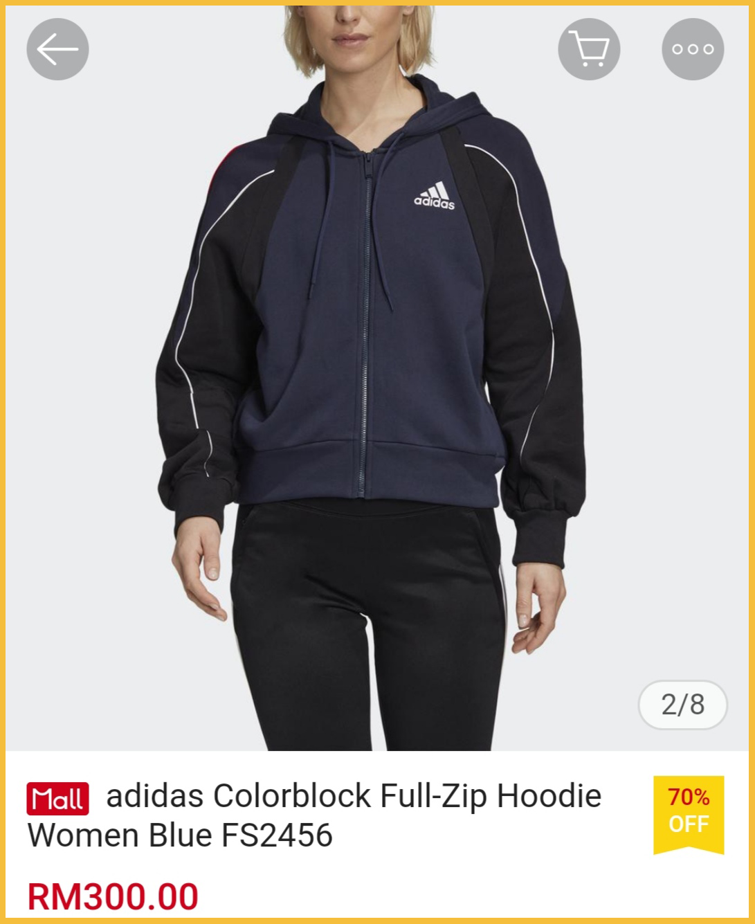 adidas Colorblock Full-Zip Hoodie Women Blue FS2456 – RM300