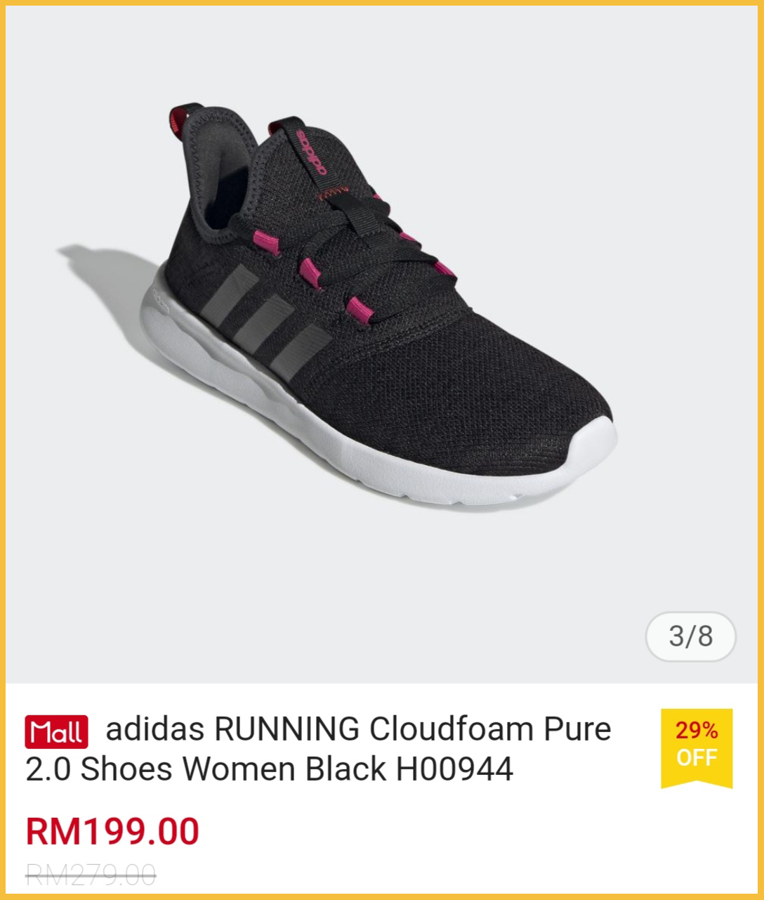 adidas RUNNING Cloudfoam Pure 2.0 Shoes Women Black H00944【折扣29%】- RM199(原价RM279)