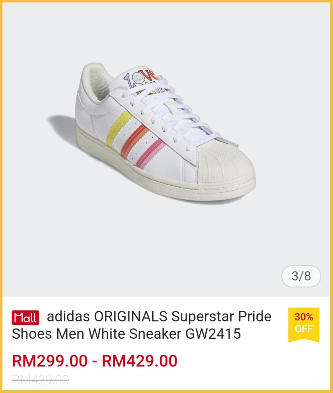 adidas ORIGINALS Superstar Pride Shoes Men White Sneaker GW2415【折扣30%】- RM299(原价RM429)