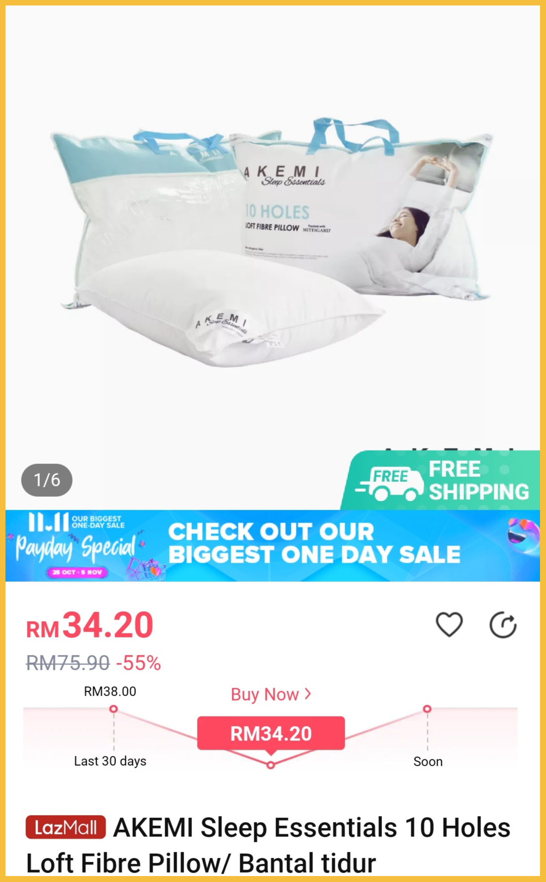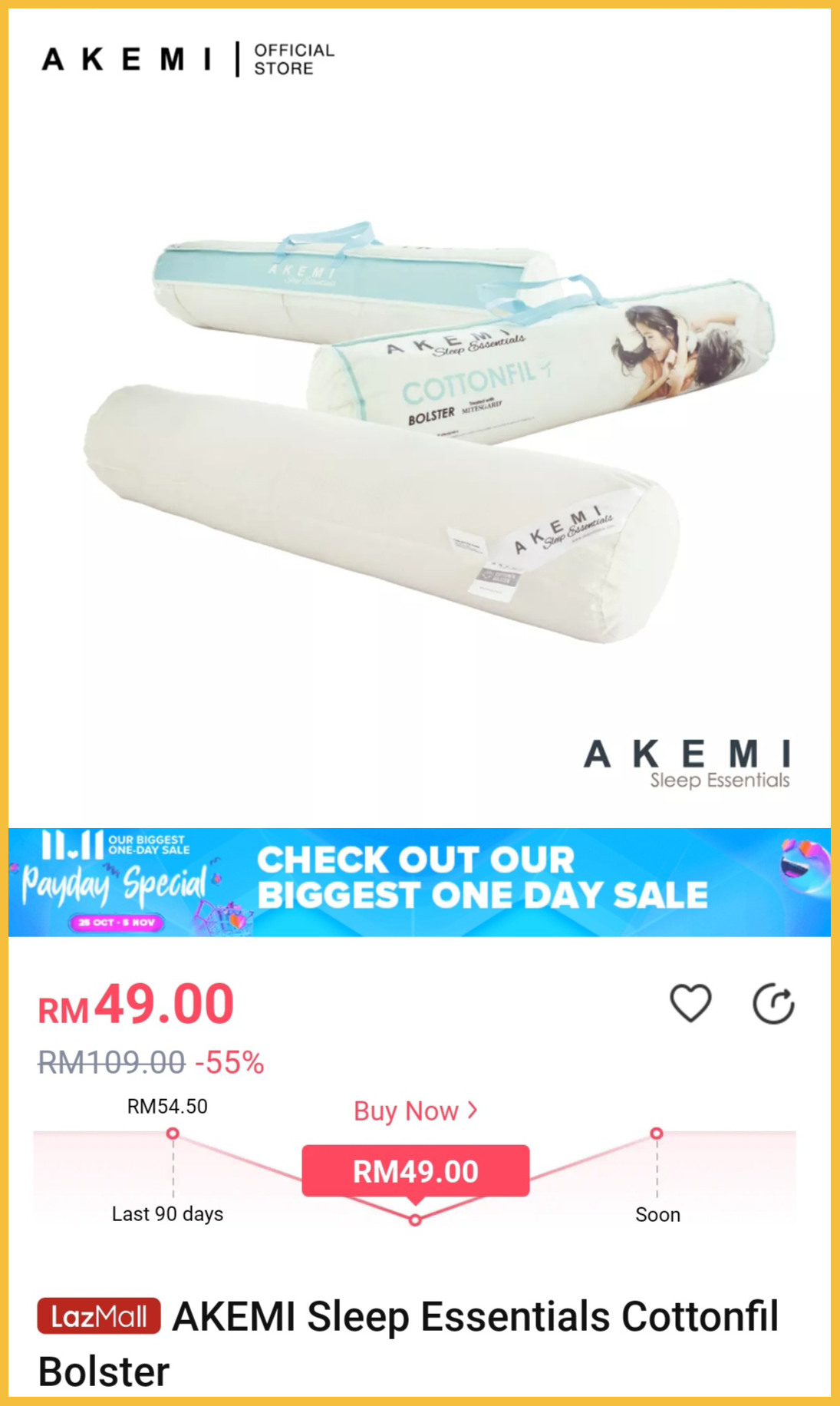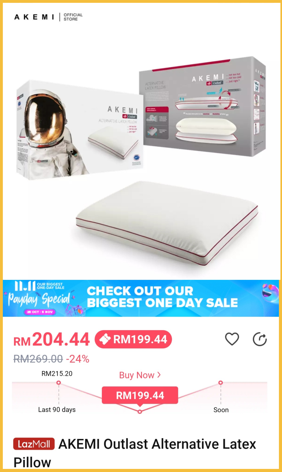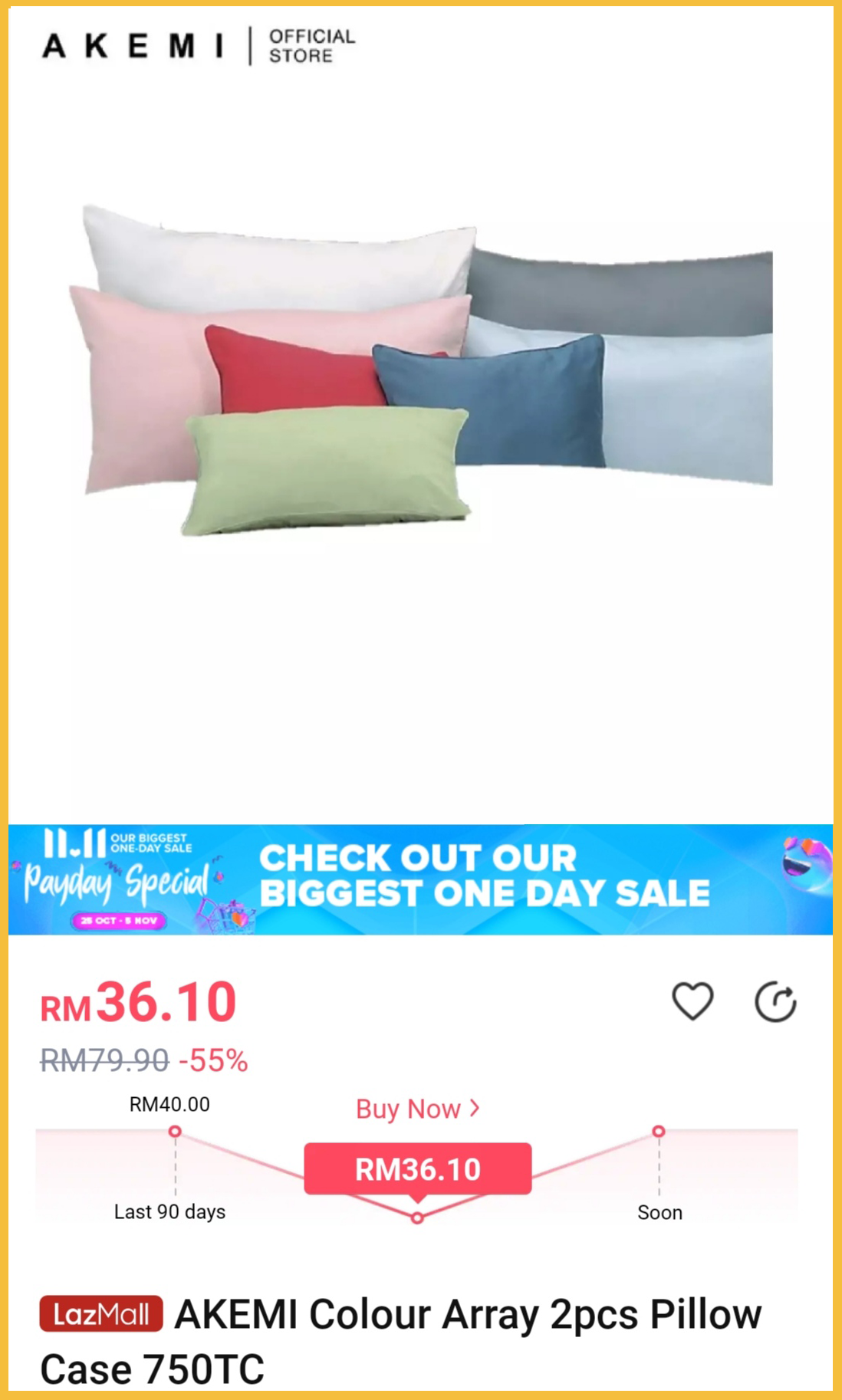 想购买新枕头或新床单的朋友,注意了!大马Akemi 与Lazada 联合推出【11.11】促销优惠!折扣高达81%折扣优惠!
