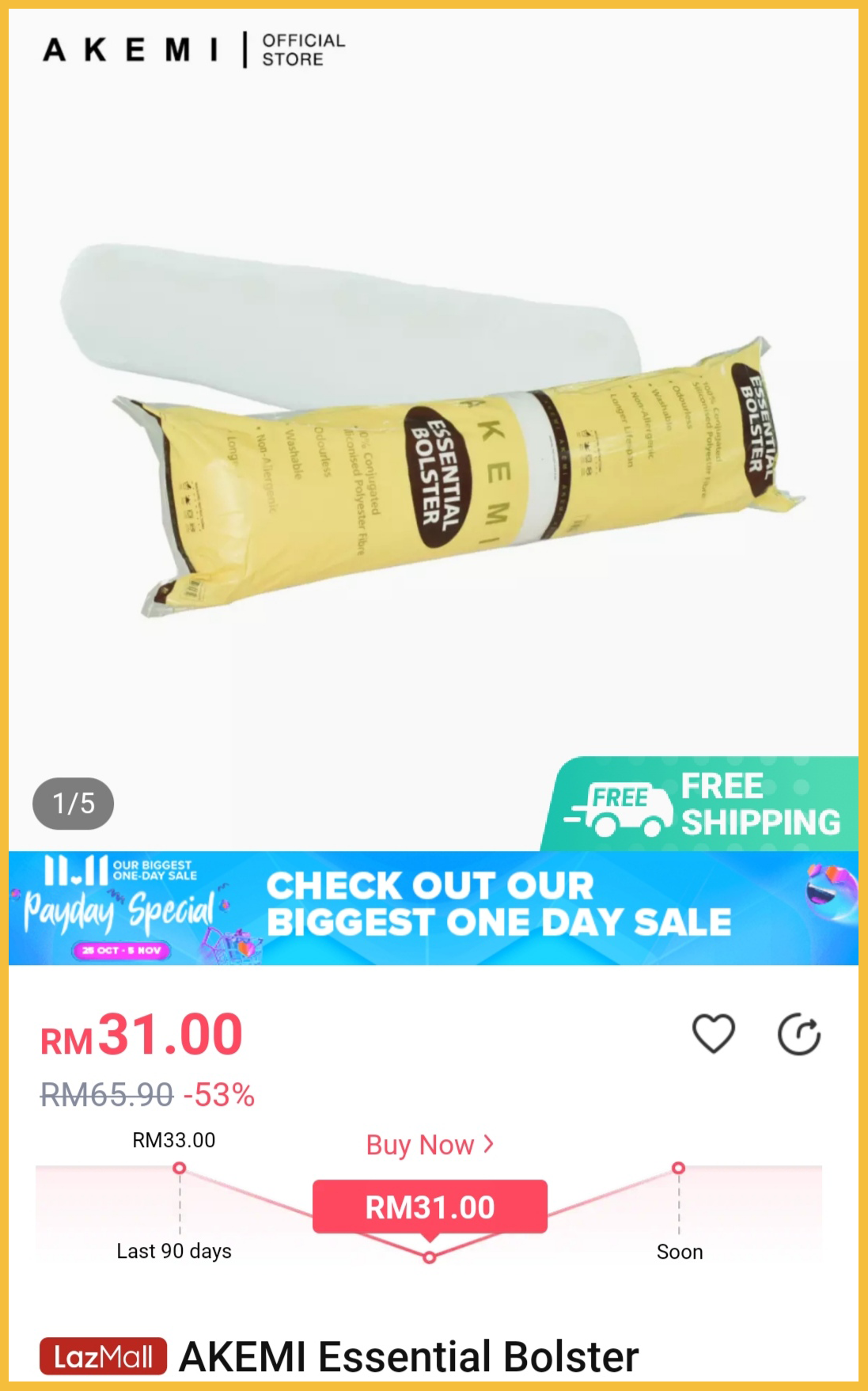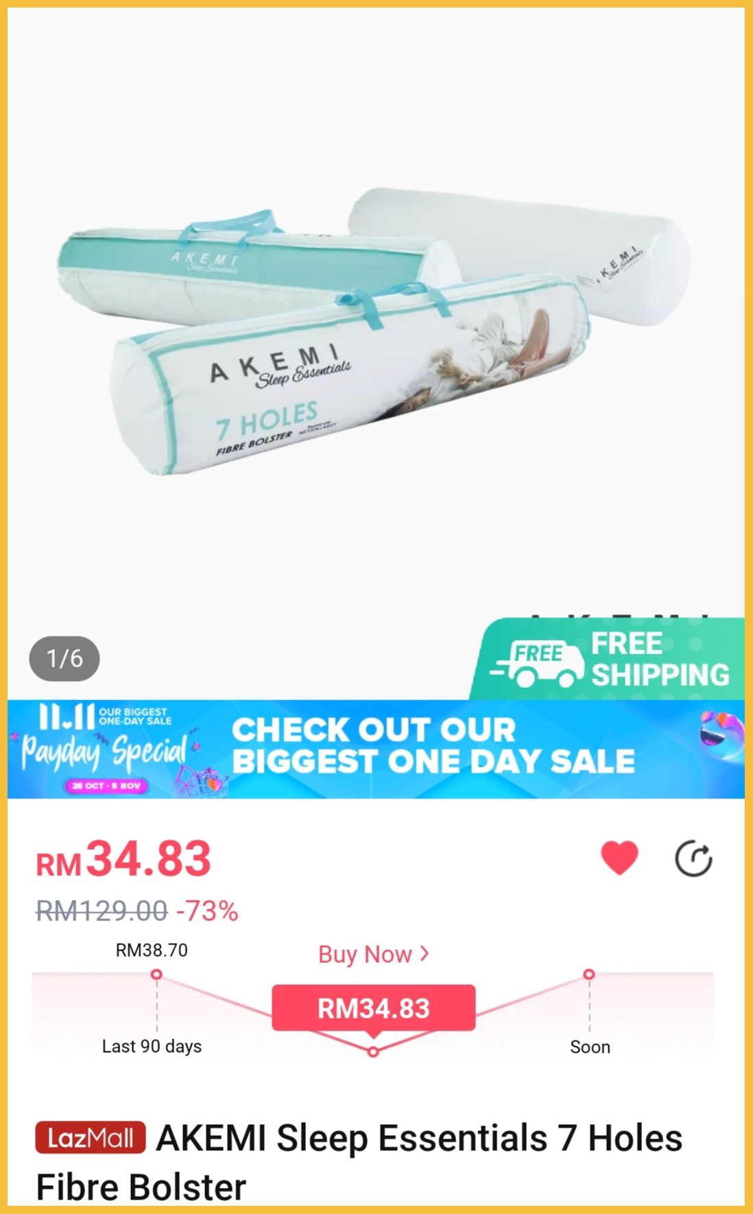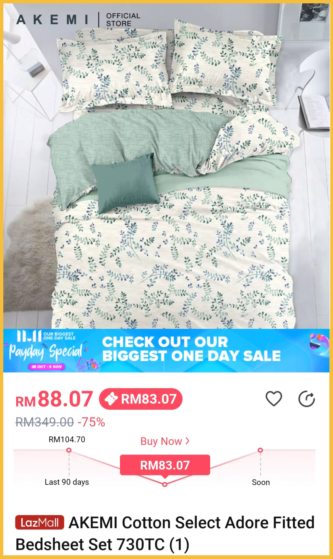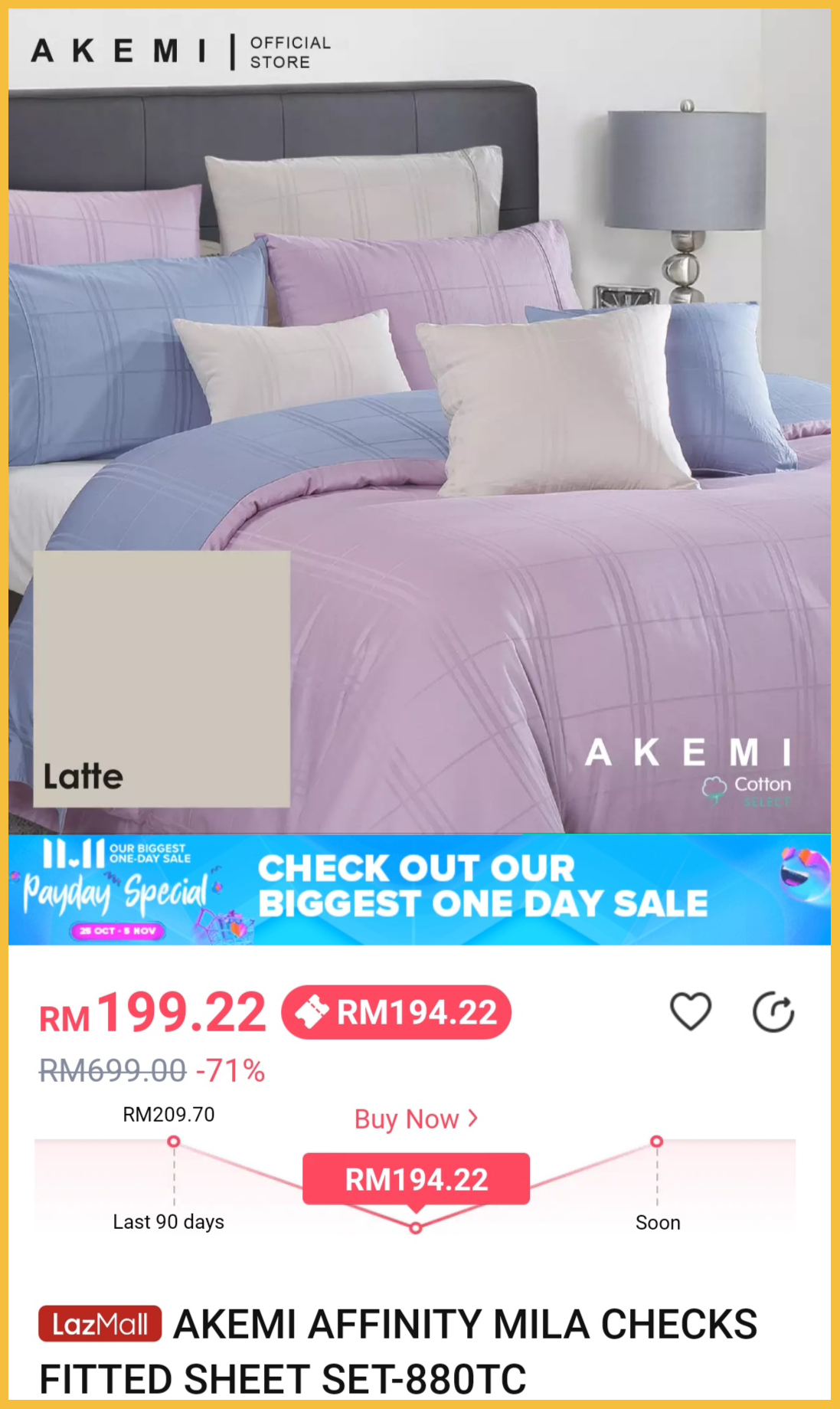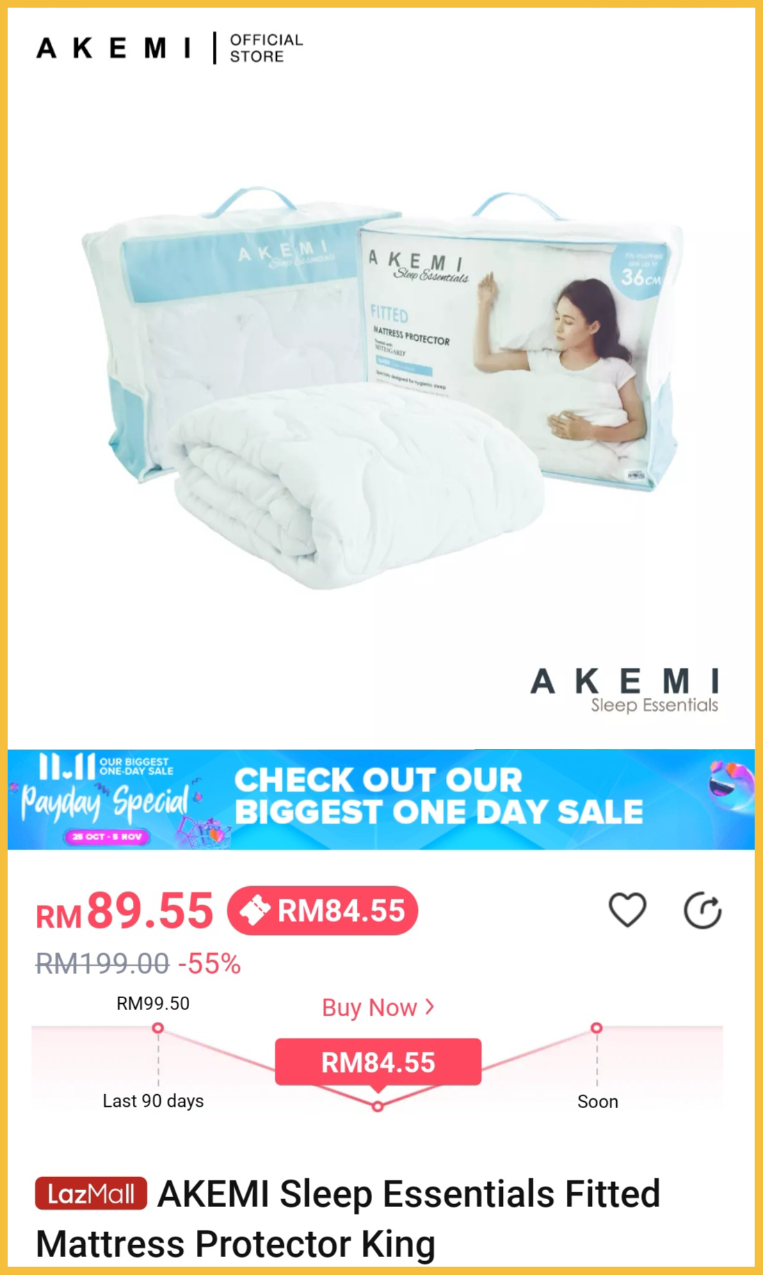 想购买新枕头或新床单的朋友,注意了!大马Akemi 与Lazada 联合推出【11.11】促销优惠!折扣高达81%折扣优惠!