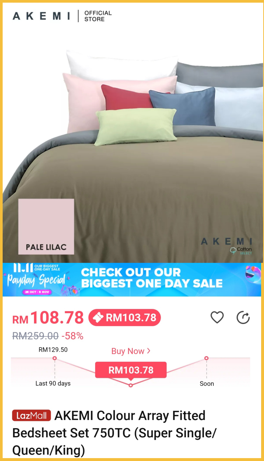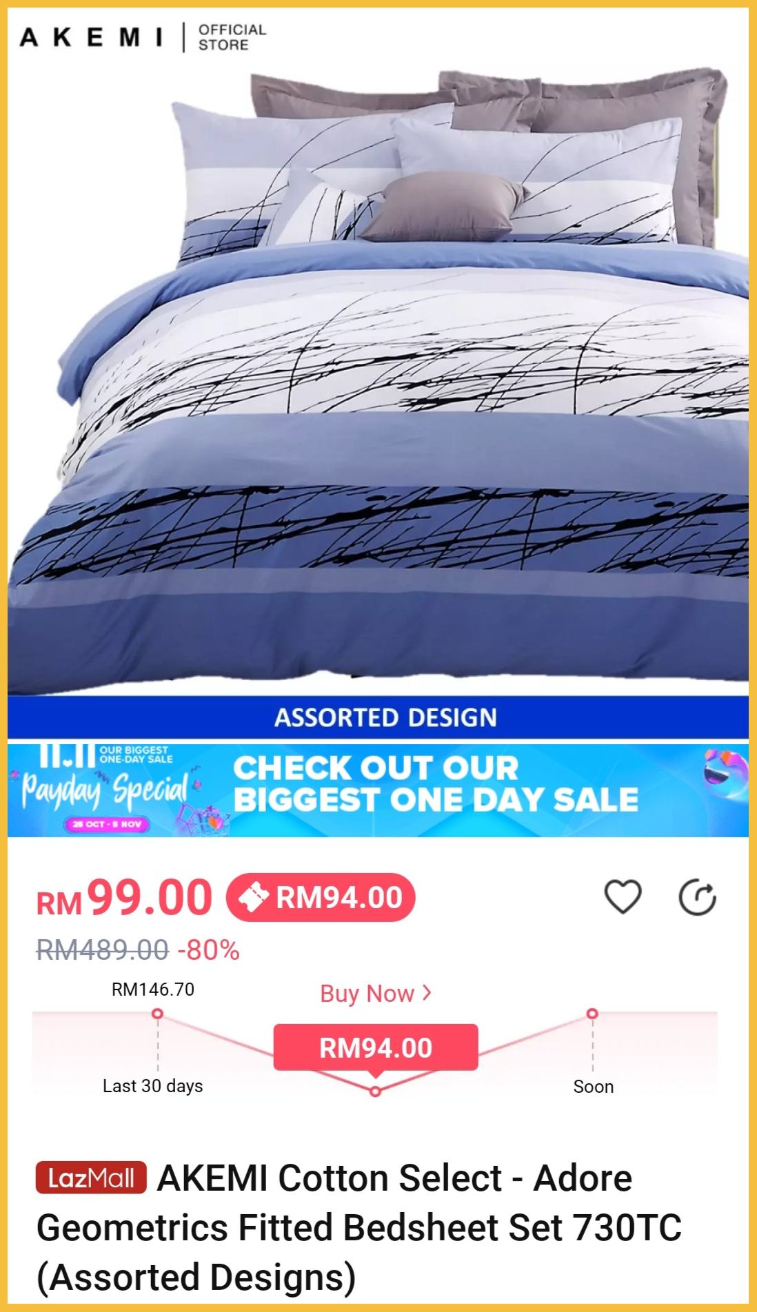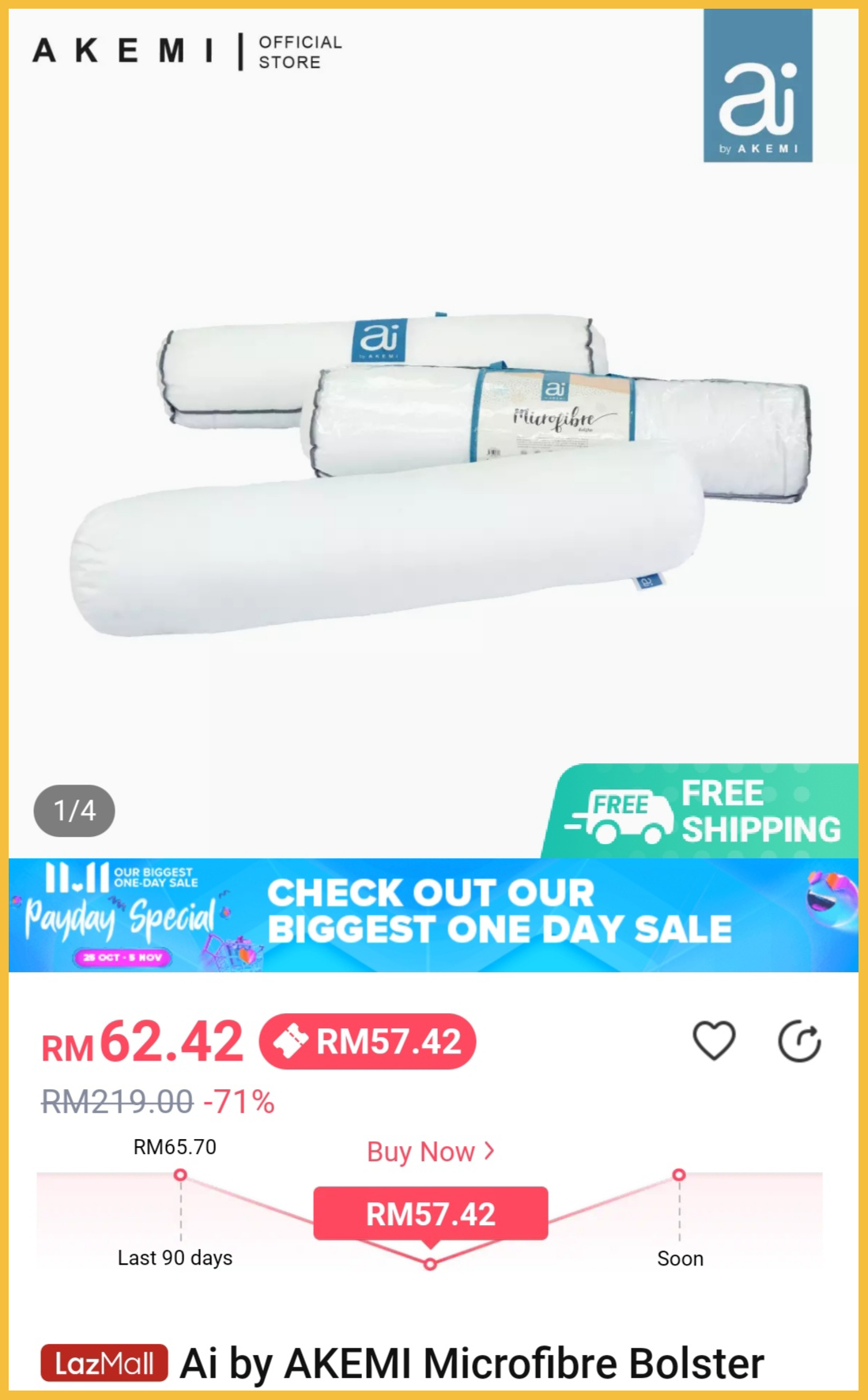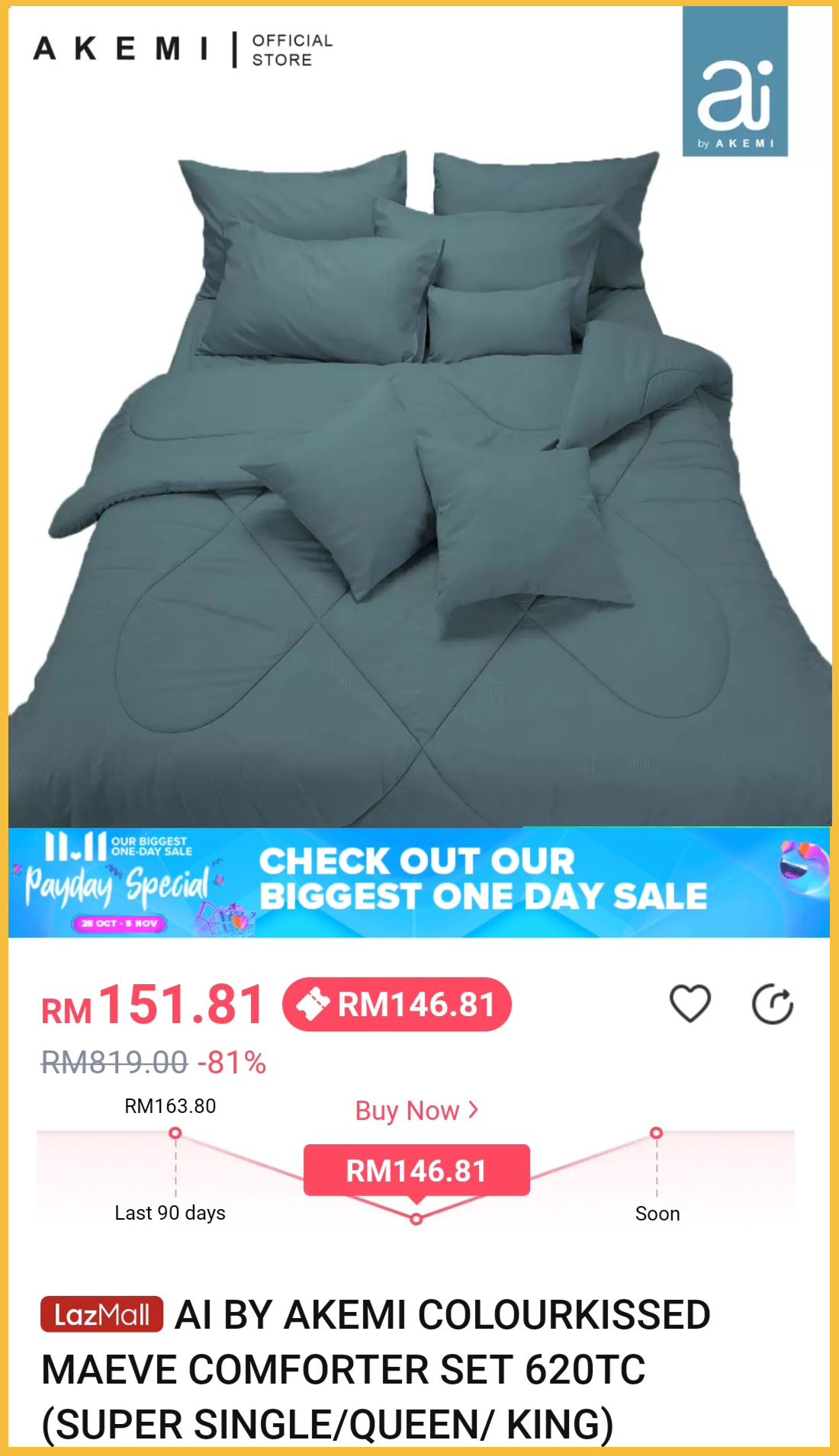 想购买新枕头或新床单的朋友,注意了!大马Akemi 与Lazada 联合推出【11.11】促销优惠!折扣高达81%折扣优惠!